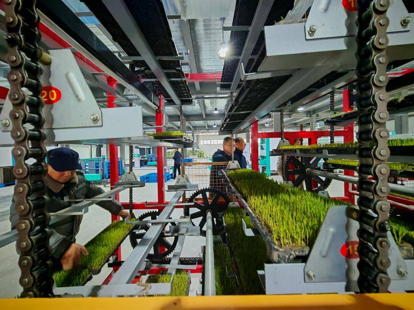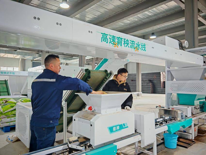 3月1日,云梦田律农事综合服务中心内,育秧育苗播种车间一片繁忙景象。工作人员在循环式育秧机旁、智慧育秧数字化平台前和高速育秧流水线边有序忙碌,展现出科技与农业深度融合的生动画面。