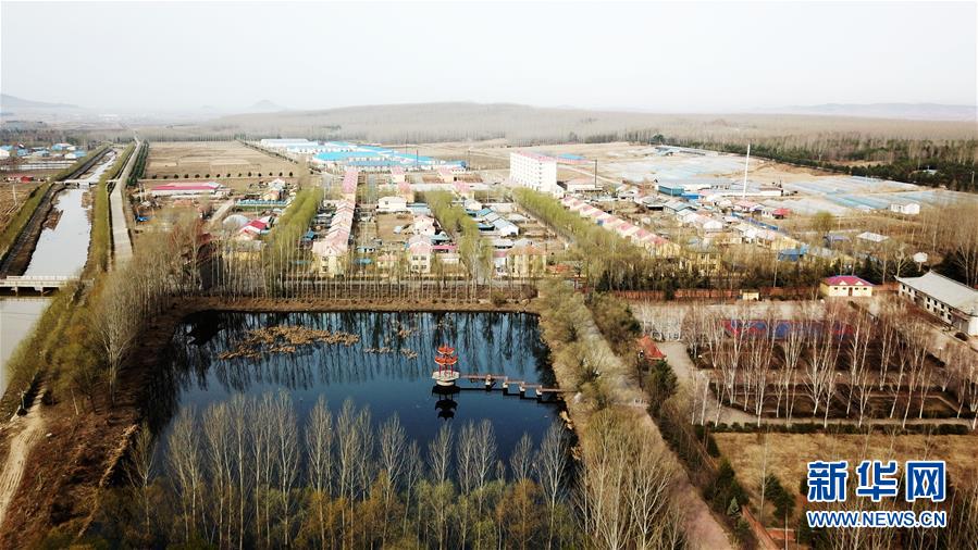 被生态林环抱的黑龙江省尚志市元宝村(4月25日无人机拍摄)。新华社记者 王建威 摄