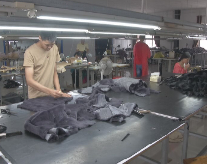 在云梦县皮草产业园的生产车间里,工人们正在加紧生产貂皮大衣。这批貂皮大衣早已被预订,将销往俄罗斯、乌克兰等地。