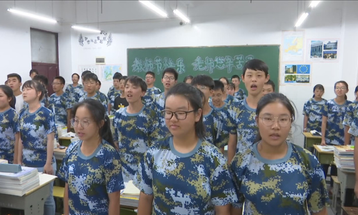 9月9日,晚上八点。黄香高中高一(1)班的孩子们,在上晚自习的时候,起立,鞠躬,集体喊出口号,向数学老师马云飞表达了敬爱之情。