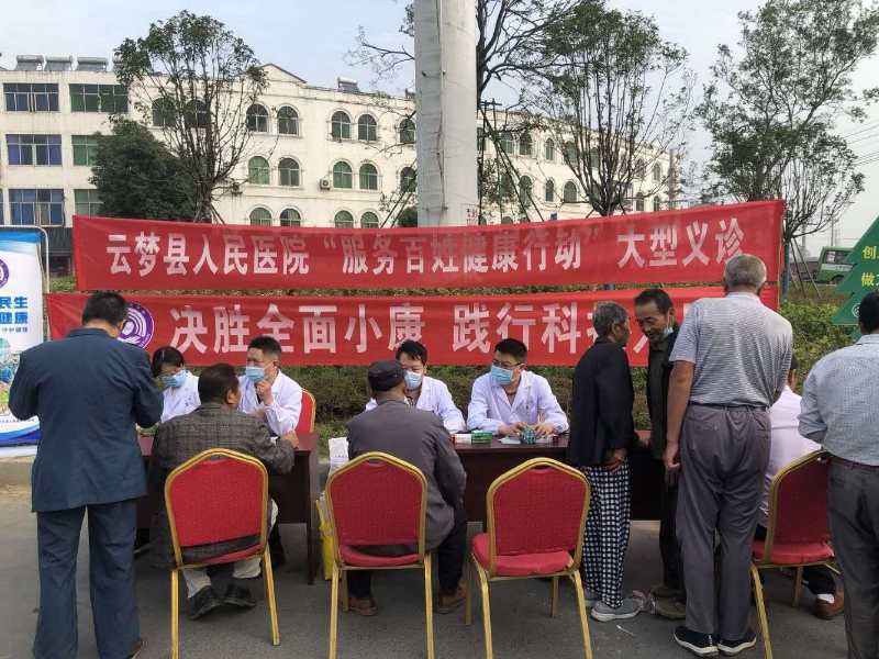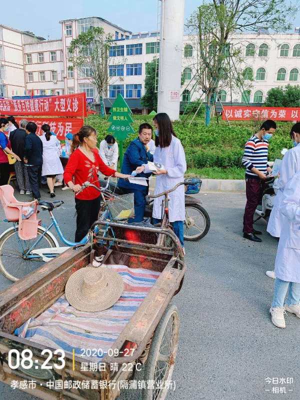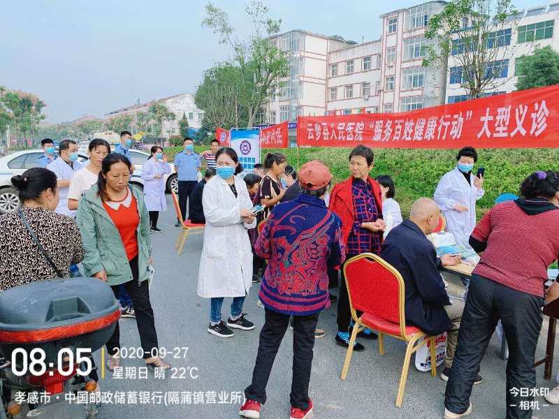 2020年9月27日上午,云梦县人民医院组织胸痛中心、心内科、急诊科等专家来到医共体基层单位隔蒲潭镇开展"服务百姓健康行动"大型义诊活动,同时还开展了教学查房、手术带教、学术讲座等,活动取得圆满成功。9月27日上午7时许,隔蒲潭镇世纪大道与省211交界处,人头攒动,病友们早早来到义诊台前等候,义诊开始后,专家们为市民测血糖、量血压,为他们提供健康咨询指导,耐心讲解病友提出的各种疑惑和病症。义诊共免费接诊150多人次,测血糖50多人次,现场发放各种健康知识折页,读本,共计1200余份,免费发放了常见病多发病及心脑血管疾病常用药物,共计价值2000余元,隔蒲潭镇父老乡亲在家门口享受县级医学专家的服务,受到百姓的一致称赞。