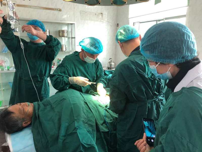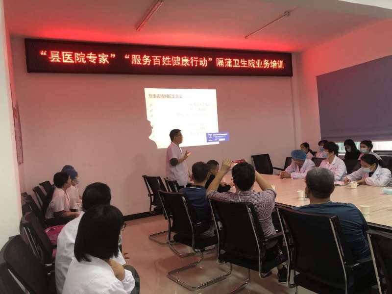 义诊结束后,结合隔蒲潭镇中心卫生院实际情况,专家门还进行了住院病人教学查房、门诊处方点评、还预约现场带领卫生院医生做了一台教学手术,让年轻医生受益匪浅。最后心血管内科胡海涛主任、护理部副主任护师给全院医务人员做了以心脑血管疾病的重症判断与急诊症状讲解、房颤的判断与诊疗、高压氧相关知识及临床应用等学术讲座。教授们深入浅出的精彩授课,普外科精妙的带教手术,让基层医务人员得到了一次良好的学习机会,切实提升了隔蒲潭镇中心卫生院医疗服务质量。