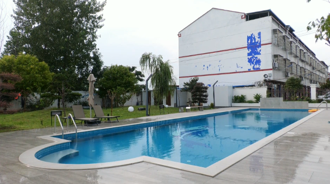 近日,胡金店镇清金公路旁,辰昕生态景观园内清洁明亮的游泳池引人跃跃欲试,大型观鱼池与多座玻璃鱼缸里,锦鲤鱼、金鱼自在游弋,错落景观让游人驻足赏玩、流连忘返。