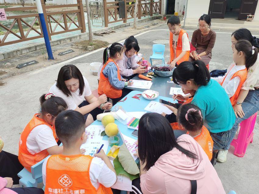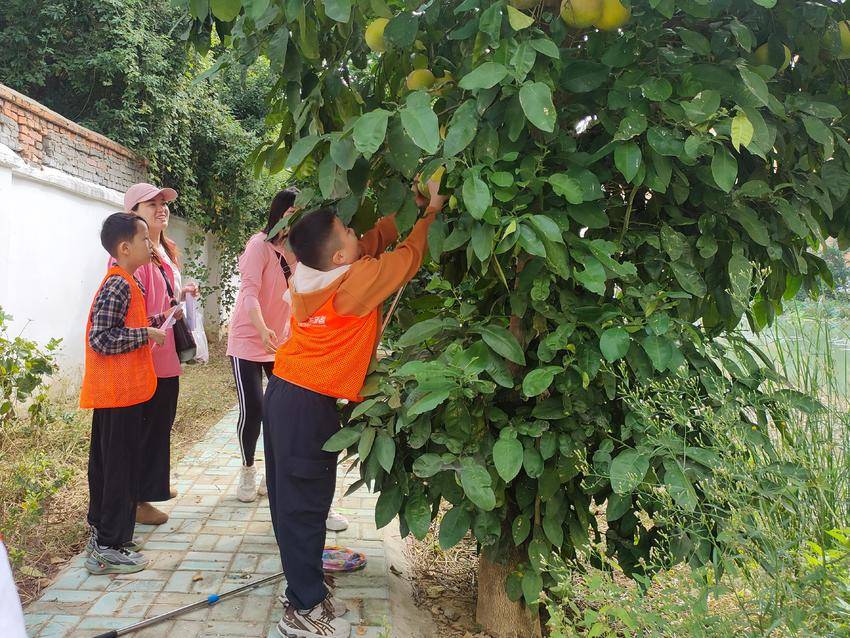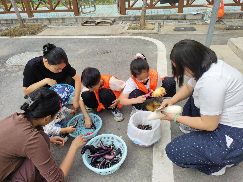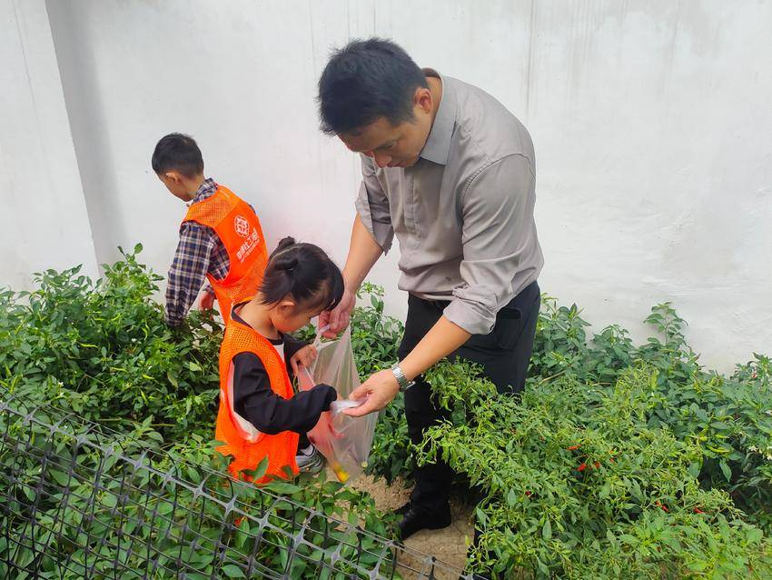 绘本的拓展环节将活动推向高潮。在社工和志愿者的引导下,各组亲子家庭手持任务清单,投身于自然的“课堂”。孩子们在家长的协助下,有序地采摘了辣椒、茄子、橘子、柚子等当季果蔬,亲手收获秋日的果实,体验劳动的乐趣。