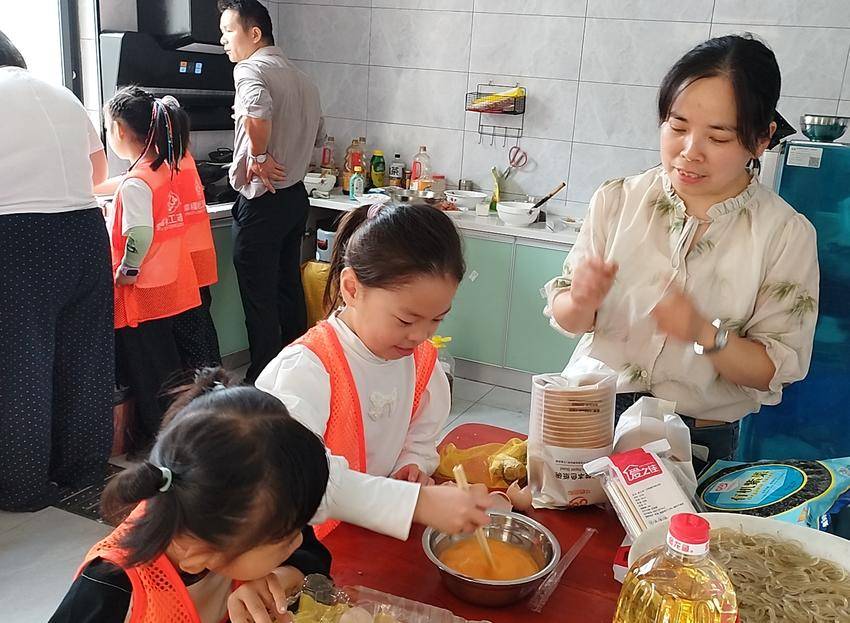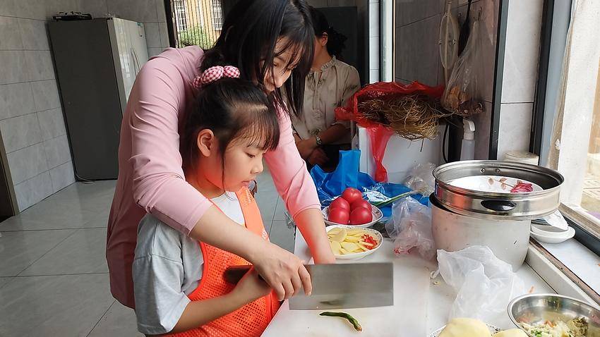“削土豆可是个技术活,平时看妈妈削得那么轻松,但是可考验双手的配合了!”萌萌和俊好对着社工老师说。“打鸡蛋我可是在行的,你看鸡蛋壳我都没有掉到碗里。”跃跃得意地说道。