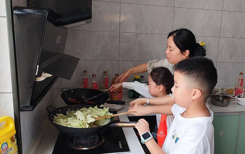 为了让活动形成完善闭环,社工和志愿者引导各亲子小组利用采摘所得,共同商议并拟定“美食制作清单”,各亲子组一起梳理菜品所需的食材与完整的制作流程。这一过程不仅锻炼了孩子们的逻辑思维能力,更将知识从书本迁移至生活场景。最终,所有家庭通力协作,将新鲜的食材烹饪成一桌丰盛的佳肴,共同分享了劳动成果。