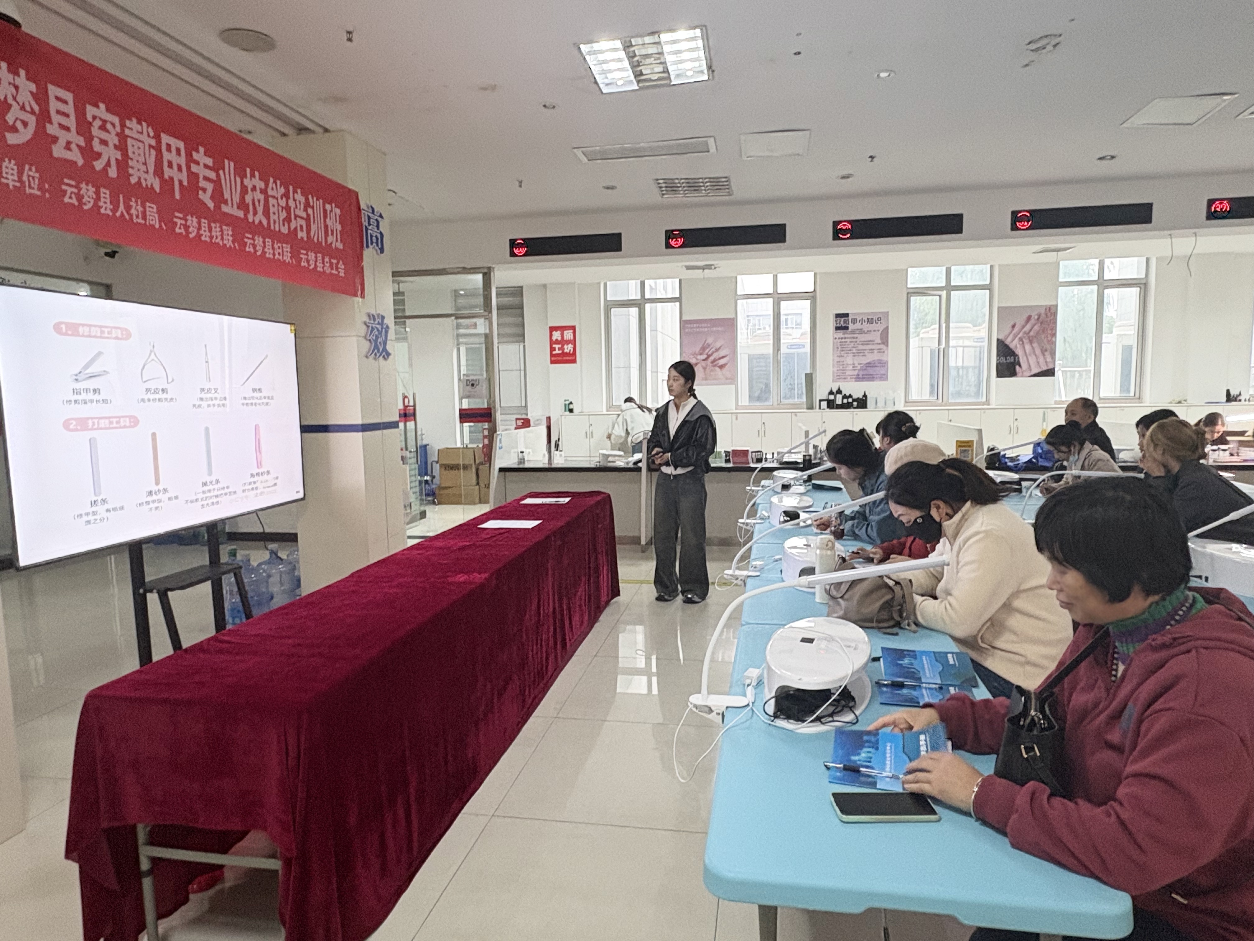 本次参训人员有32人,为期6天,培训内容为穿戴甲制作技能,参训人员为有就业创业意愿且具备劳动能力的特殊群体,包括残障人士、城乡失业待业妇女及就业困难人员。培训以“掌握核心技能、增强就业竞争力”为目标,计划实现95%以上学员考核合格,6个月内助力80%以上学员灵活就业或创业,同时全面提升学员对就业、创业政策的知晓率。