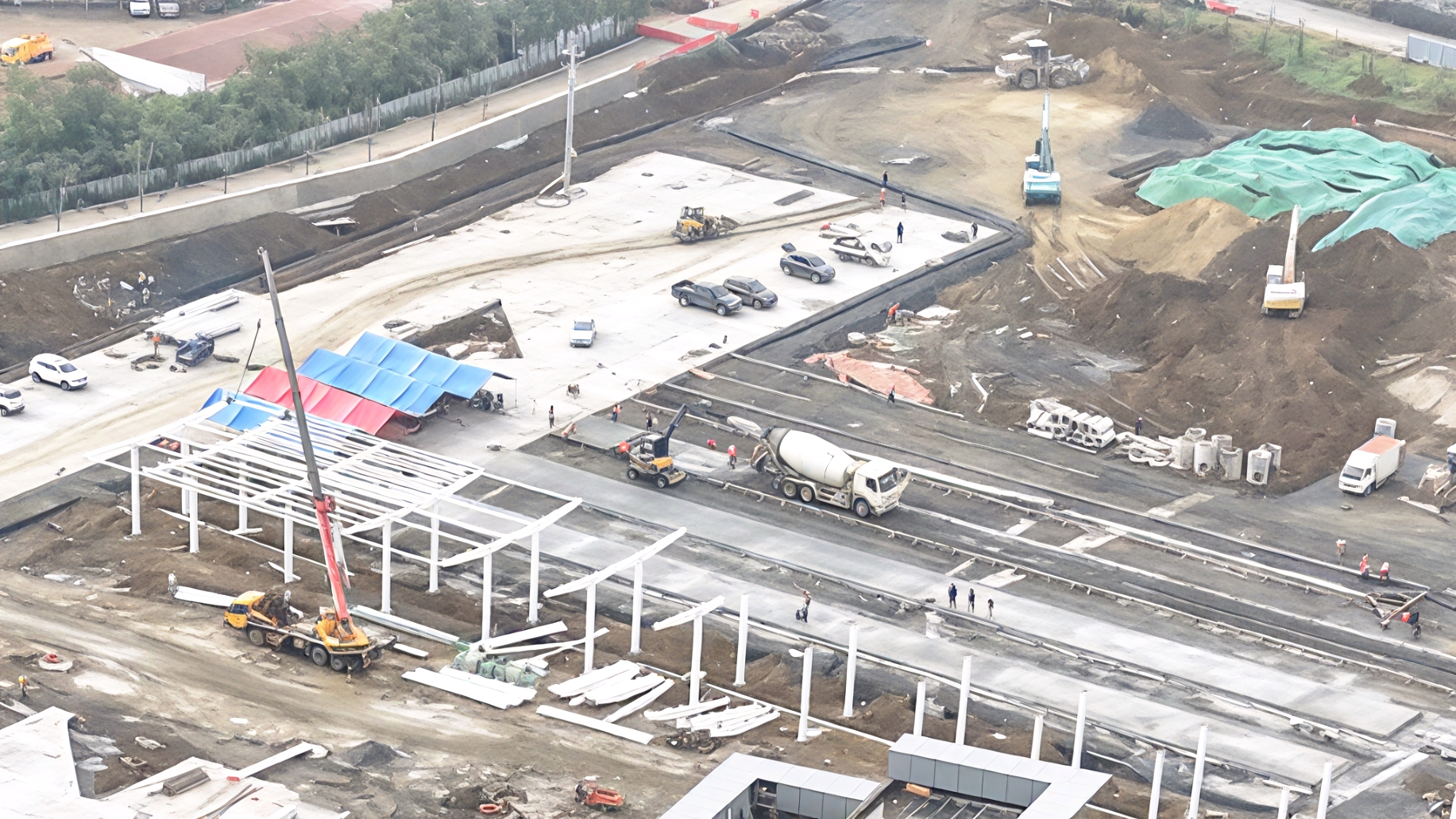近日,位于曾店镇冯巷村的子文交通物流园建设现场一片繁忙景象,各项工程按时间节点有序开展,计划于2026年3月建成投运。