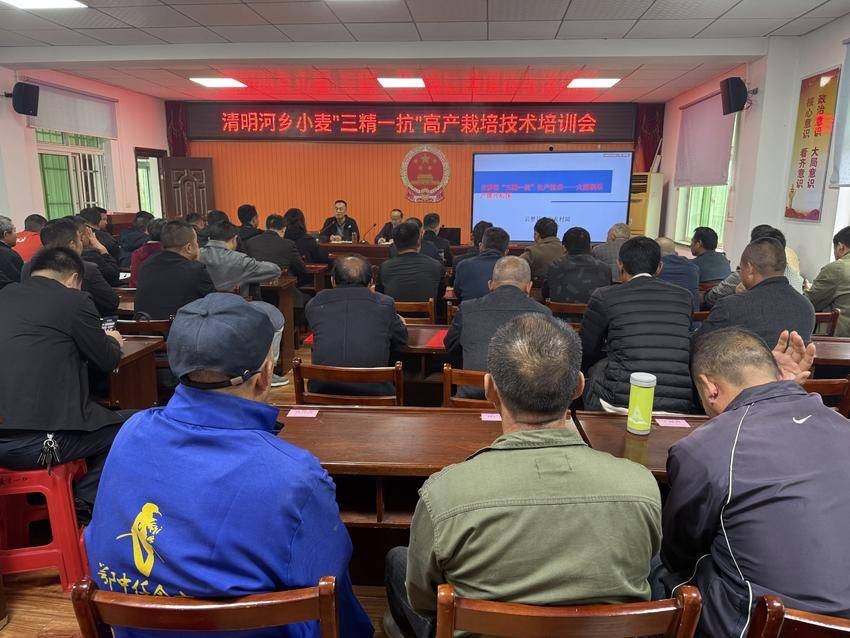 10月16日,云梦县清明河乡组织召开小麦“三精一抗”高产栽培技术专题培训会。各村(社区)党组织书记及各类经营主体、种田大户参加培训。