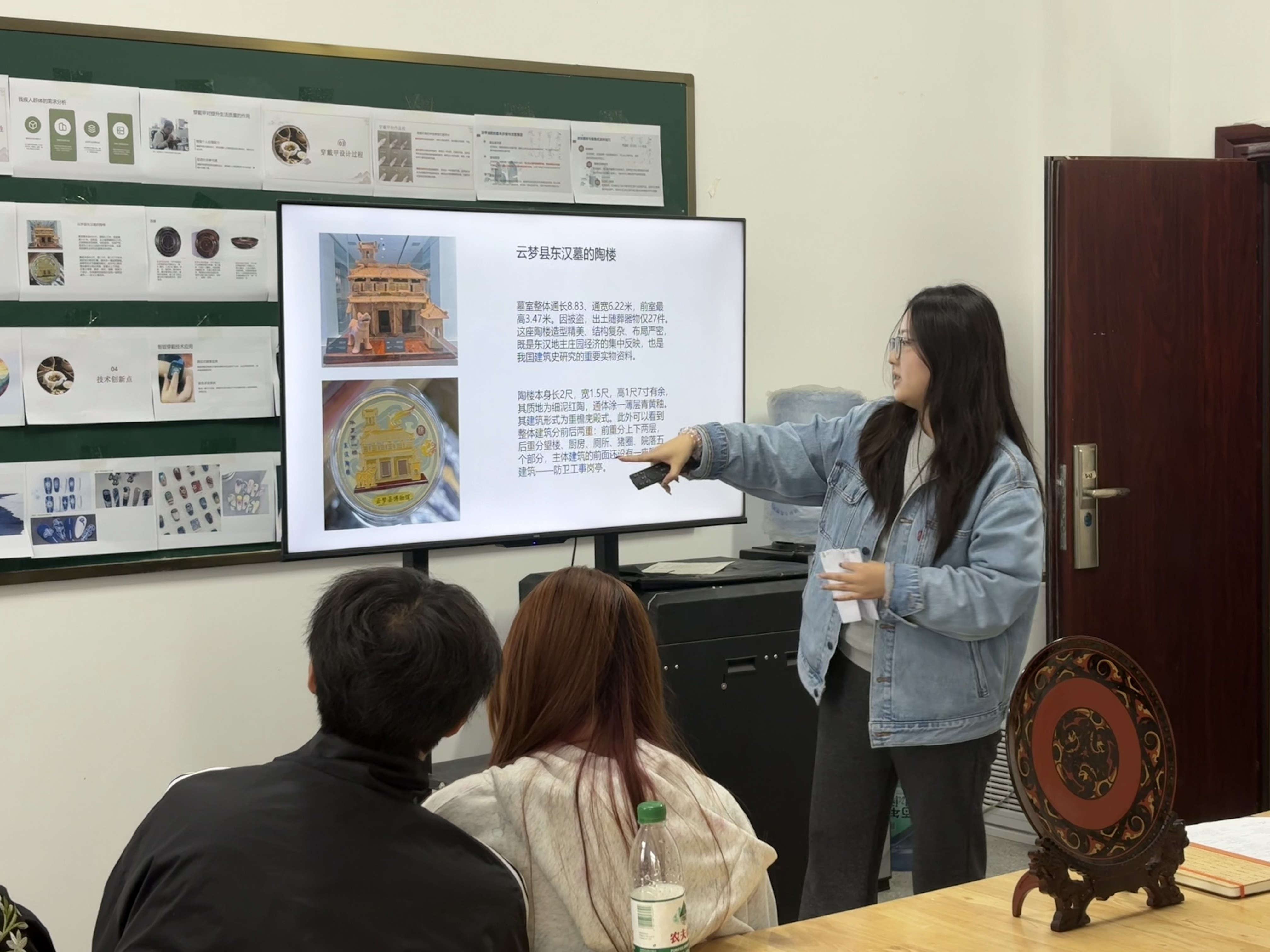 湖北工程学院视觉传达设计专业学生梁玮琪:“我对云梦县东汉墓出土的陶楼最感兴趣,我准备将它的外形以及它其中包含的一些小动物的形象结合到穿戴甲的设计当中。”
