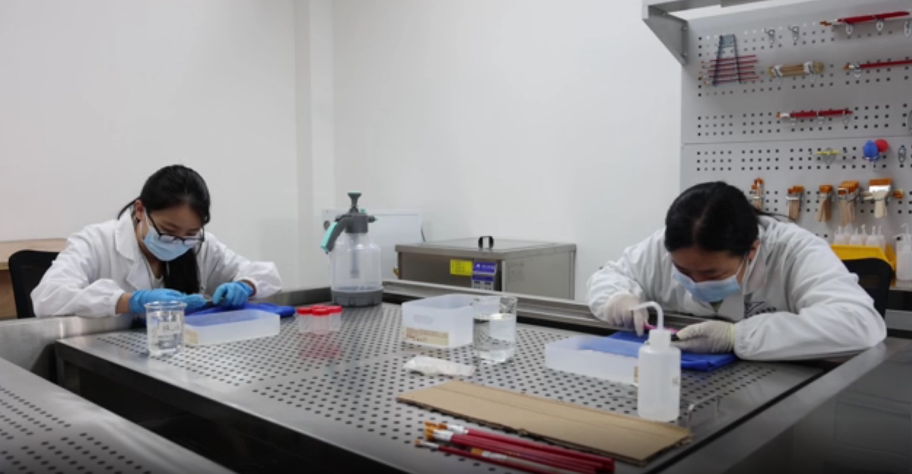 云梦博物馆文物修复展示中心主要划分为三大功能区:文物清洗区、文物修复区、文物设备区。参观者不仅可以透过玻璃幕墙观摩修复师用超声波清洗机等先进设备对各类文物进行清洗、加固、补配等专业操作的全过程,还可以在专业人员指导下尝试参与一些简单的文物修复活动。除了修复本馆文物,该中心还可以承接外部修复任务。同时,这里也是文物修复人才的“实战课堂”,年轻修复师可以在这里跟着资深修复师学习实际操作,积累文物修复经验。该中心还会组织培训、交流活动,帮助修复师提升专业能力,为文物保护事业培养和储备更多合格人才。