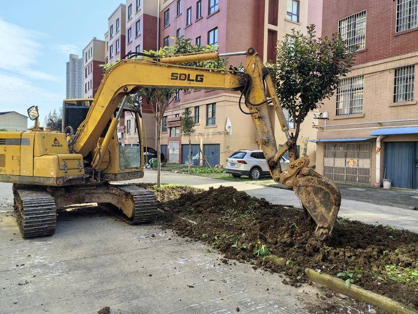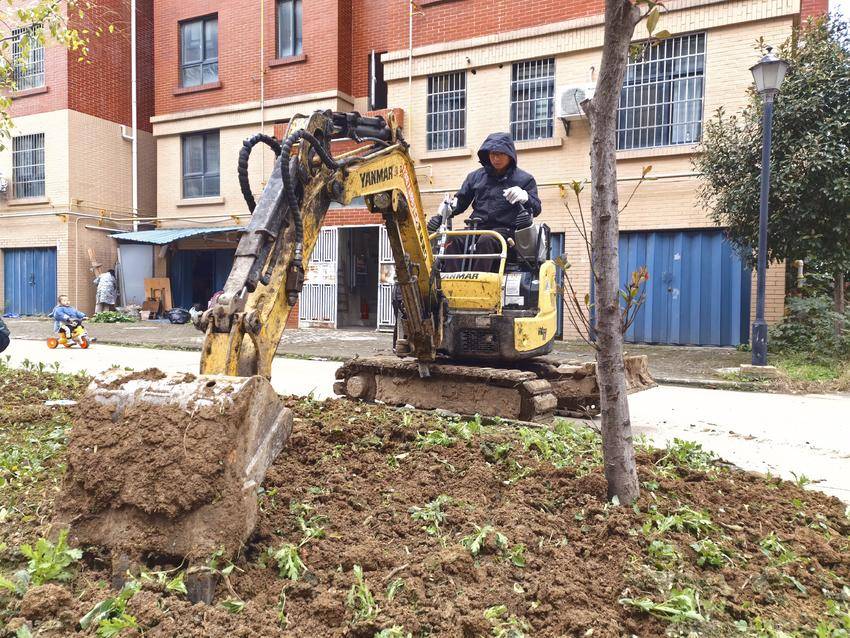 11月18日,晨曦中的云梦县城关镇陈赵社区林语苑小区已是一片繁忙景象。挖掘机的轰鸣声与工人的作业声此起彼伏,一处处绿化带私种的蔬菜、侵占公共空间的违建在专业作业下被逐步清除。