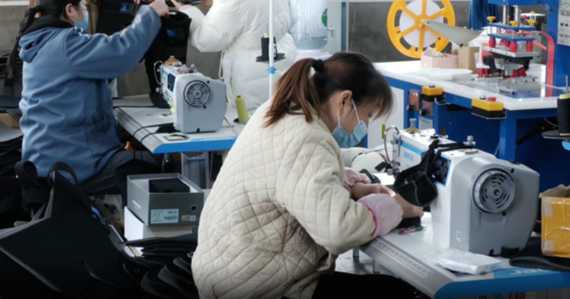 走进湖北省尚缝时代纺织品有限公司生产车间,机器运转有序,曹娜正穿梭在排列整齐的工位间,俯身检查着鞋内衬的加工情况,并与员工沟通细节。