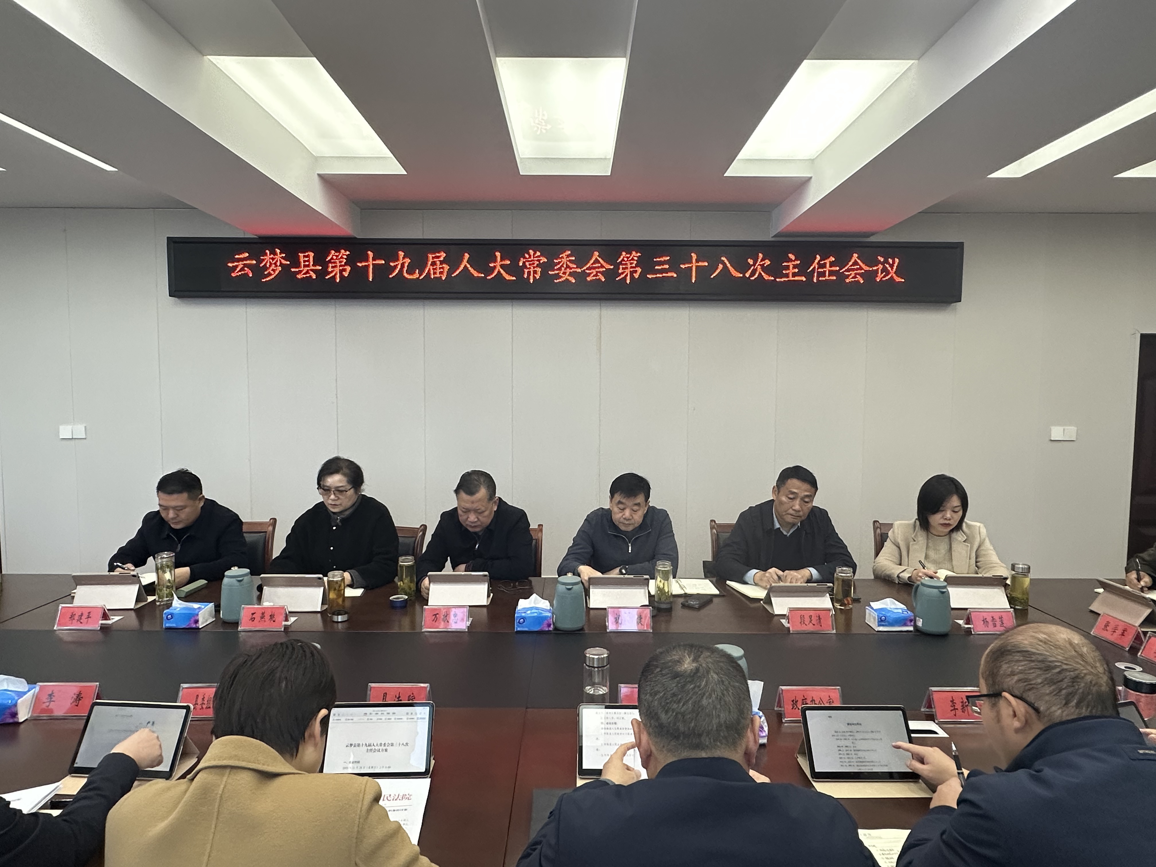 11月28日,县第十九届人大常委会第三十八次主任会议召开。县人大常委会副主任祝捷主持会议,县人大常委会副主任万献忠、石燕桃、段足清、郑建平、杨雪莲出席会议,县人民政府副县长李伟、县人民法院院长刘真华及县委组织部、县政府办公室有关负责人列席会议。