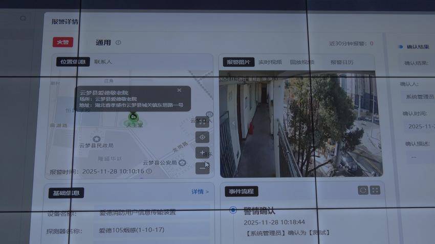 该中心已成功将全县9家养老机构的火灾自动报警系统、消防水系统、视频监控系统等进行数字化改造并全部接入中心平台。该中心不仅可以精准定位接入的9家养老机构,同时还具备三大核心功能:一是实时感知,在养老机构端,新安装的信息采集装置能实时监测消防管道的水压、水位,捕捉火灾报警主机的每一次信号,并通过安全防火墙确保数据稳定传输。二是智能巡检,在管理中心端,巨大的显示屏上动态轮巡着各机构消防控制室、疏散通道、安全出口等关键区域的实时画面,AI视频监控系统能够自动识别异常情况。三是闭环处置,一旦出现火警信号或设施异常,平台会立即触发声光报警,并通过短信、App推送等方式,将预警信息及精确定位同时发送给中心值班人员、机构负责人和消防救援部门。同时,平台自动生成报警日志和故障日志,全程跟踪直至问题解决,形成管理闭环。
