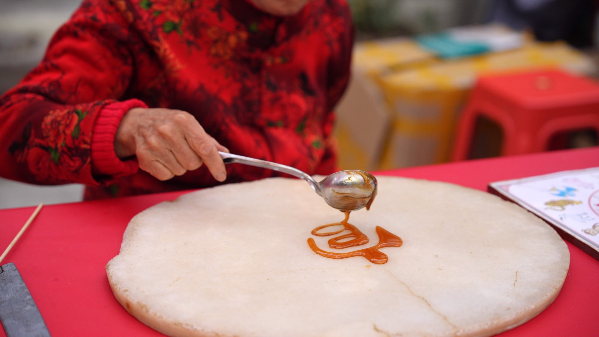 “引流”不仅体现在人气上,更深入到了业态中。在非遗互动区,糖画手艺人以糖为墨、以板为简,现场勾勒秦简文字,老手艺因文化加持焕发新生。