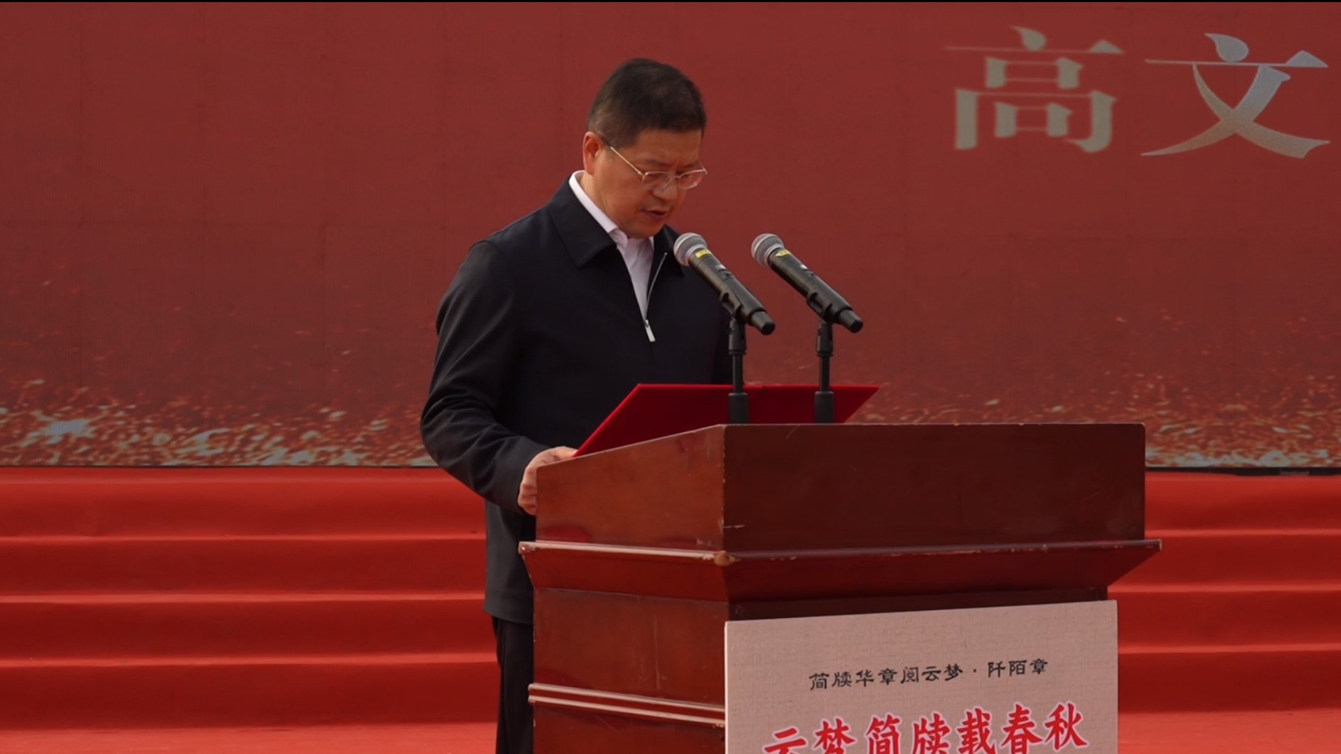 县委书记高文峰在开幕式上致辞。他说,一年来,我县始终牢记习近平总书记的殷殷嘱托,坚决扛牢文化资源保护和推动文化创新发展的重要历史使命,坚定推动文化事业和文化产业繁荣发展,持续推进文化和旅游深度融合发展,重大活动好戏连台,文旅产业异军突起。成功举办中国法学会年会、秦简出土五十周年纪念大会、中国家书文化创享大会、全国篆书作品大赛等全国性学术、文化盛会,接待游客800万人次,实现旅游经济综合收入35亿元,分别同比增长141%、112%。