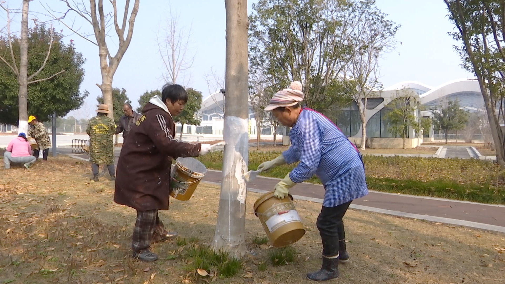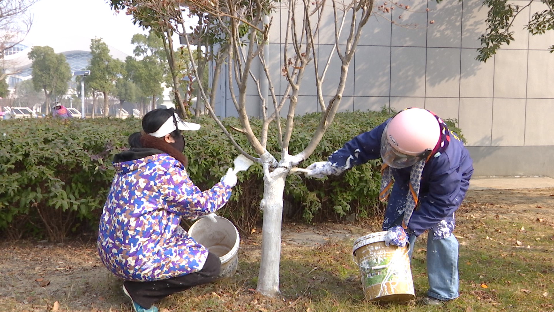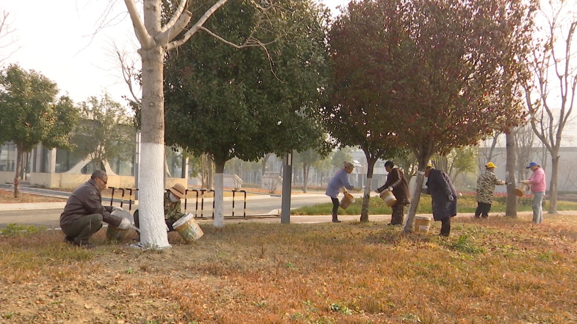 近日,我县城区及城郊示范区园林绿化养护树木冬季刷白工作正在有序推进。