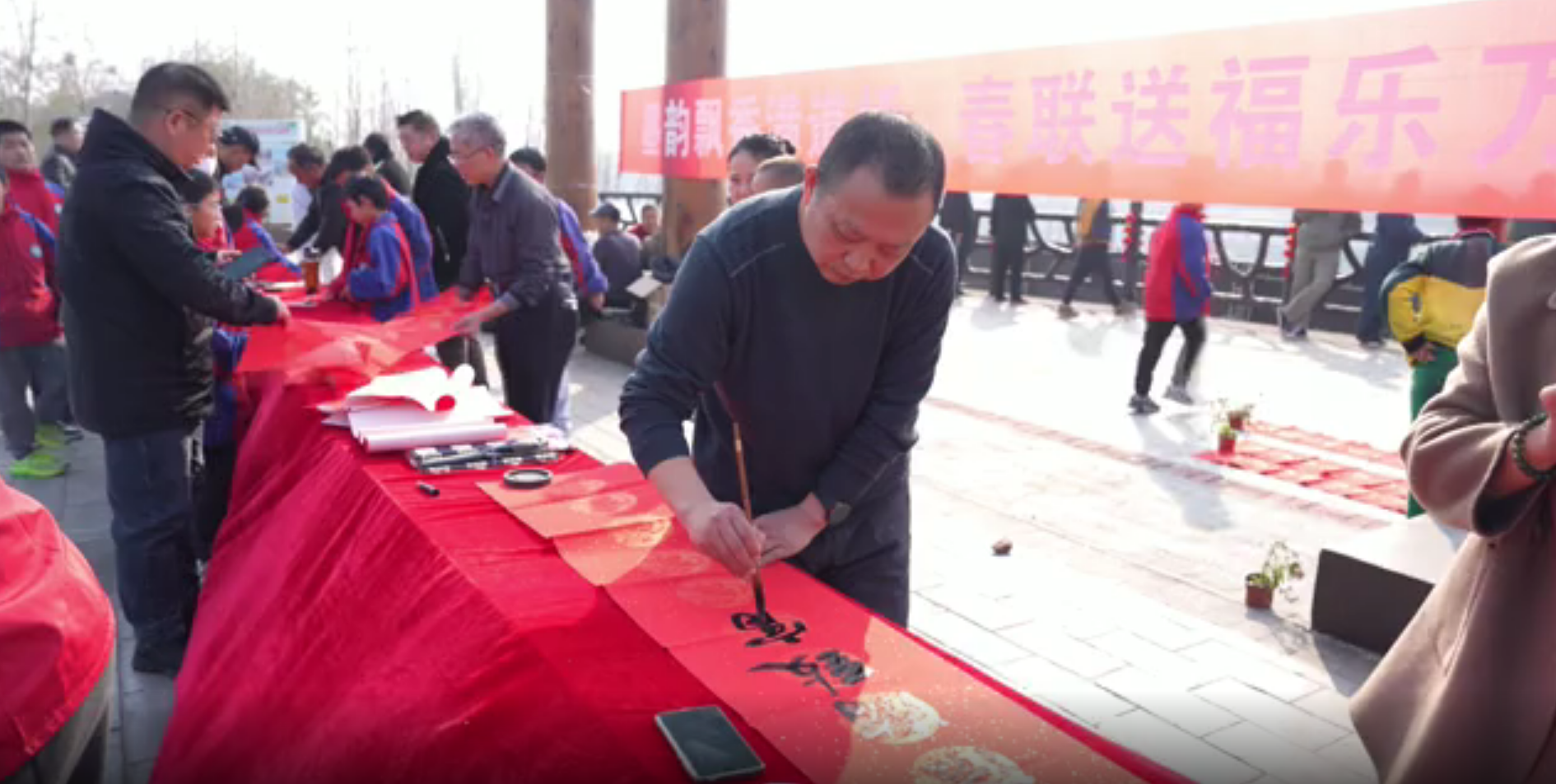 活动现场,县老年文体协会的书法专家们现场挥毫泼墨,一副副寓意吉祥的春联、一个个饱含祝福的“福”字跃然纸上,被送到往来游客和居民手中,传递着新年的喜庆与希望。