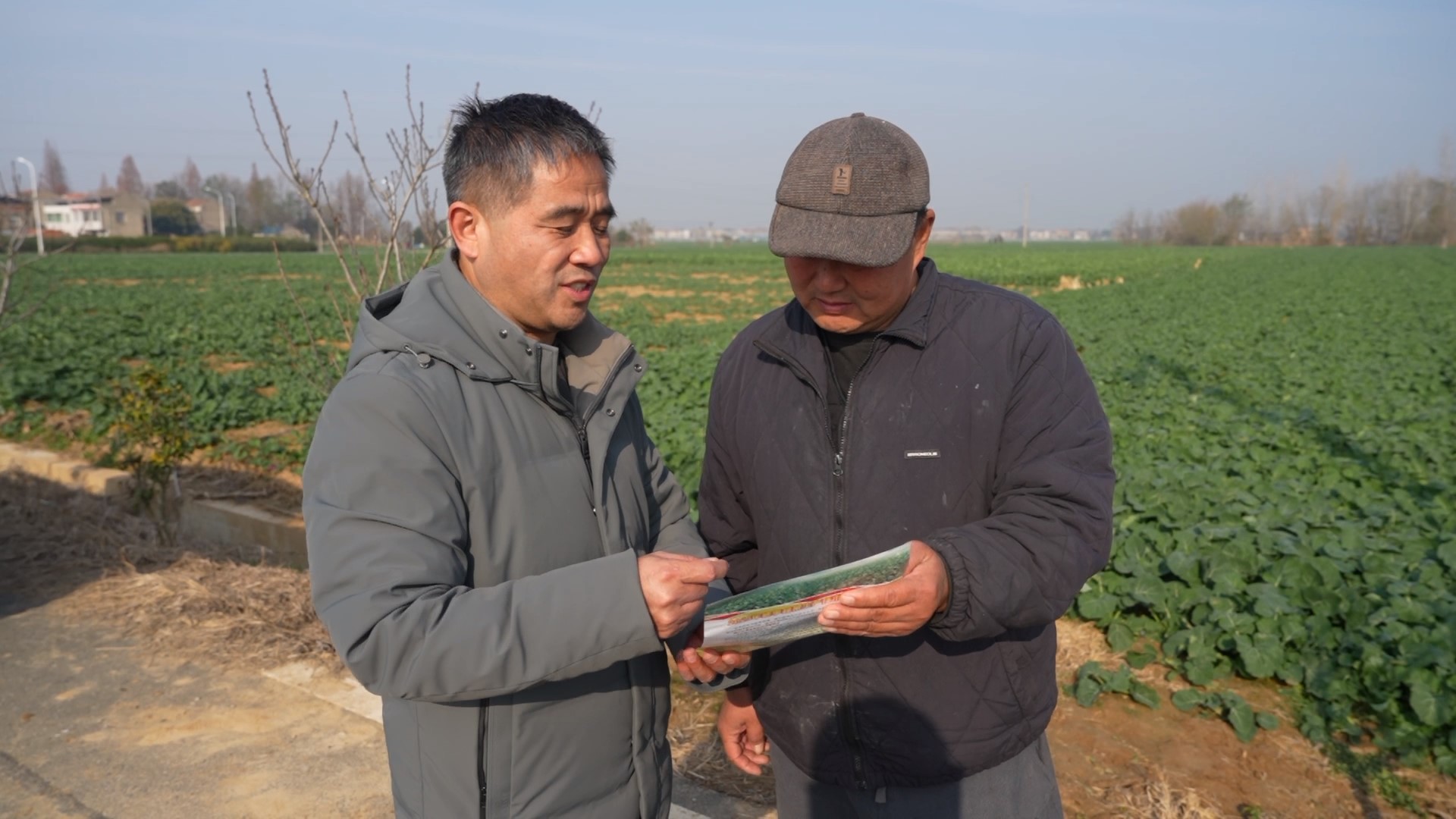 县农业技术推广中心粮油站站长程炜:“旺苗要控制旺长,对于弱小苗要采取措施,(叶面)喷施磷酸二氢钾分施尿素,促进弱苗安全越冬,保证来年夏粮、夏油的丰收。”