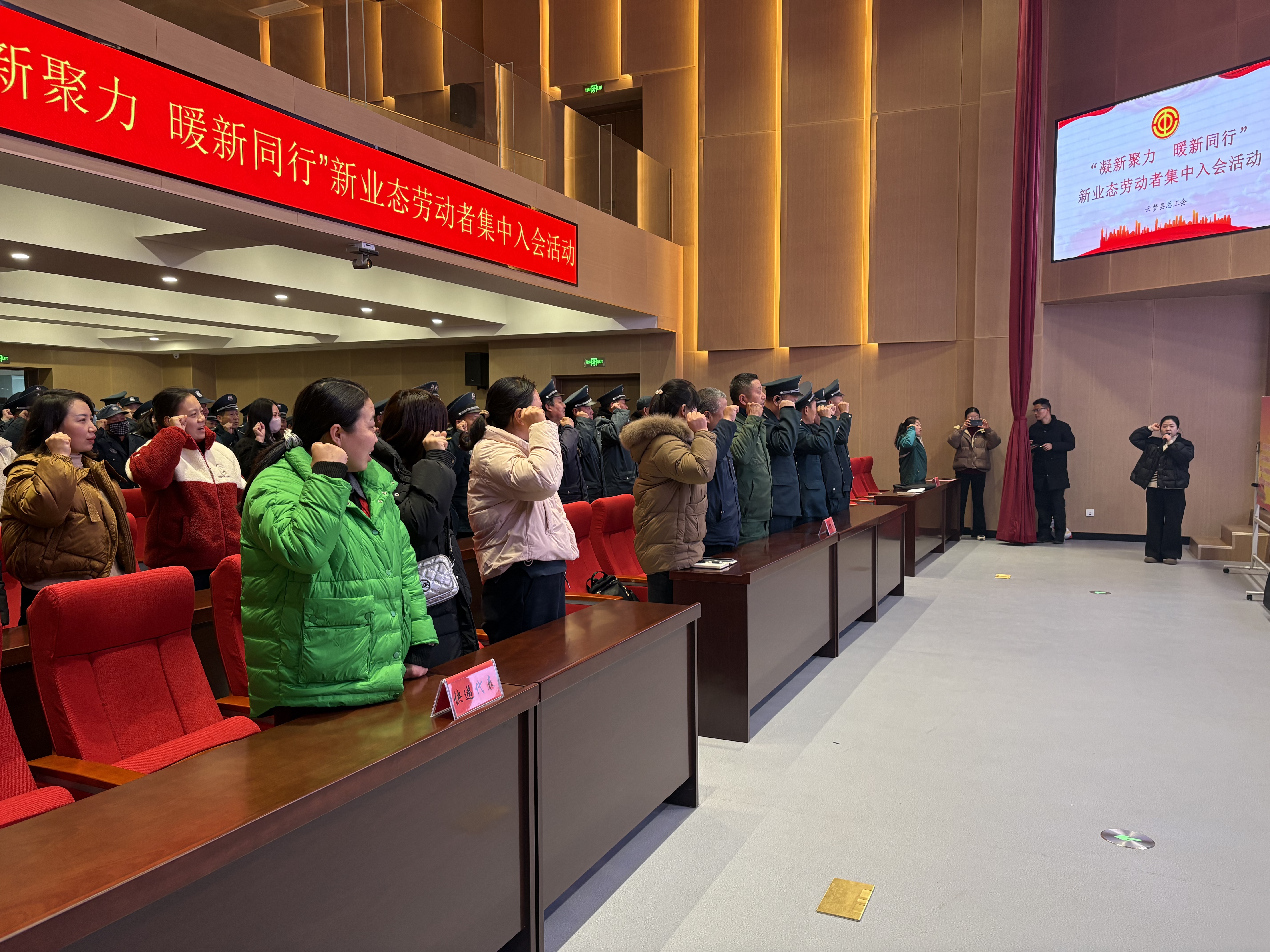 100多名新业态劳动者代表高举右拳,庄严宣誓,正式加入工会大家庭;职工代表宣读了《倡议书》,呼吁广大新业态劳动者爱岗敬业、诚信服务;相关企业代表发言,表示将全力保障新业态劳动者权益。活动现场,为新业态劳动者代表发放了关爱大礼包。