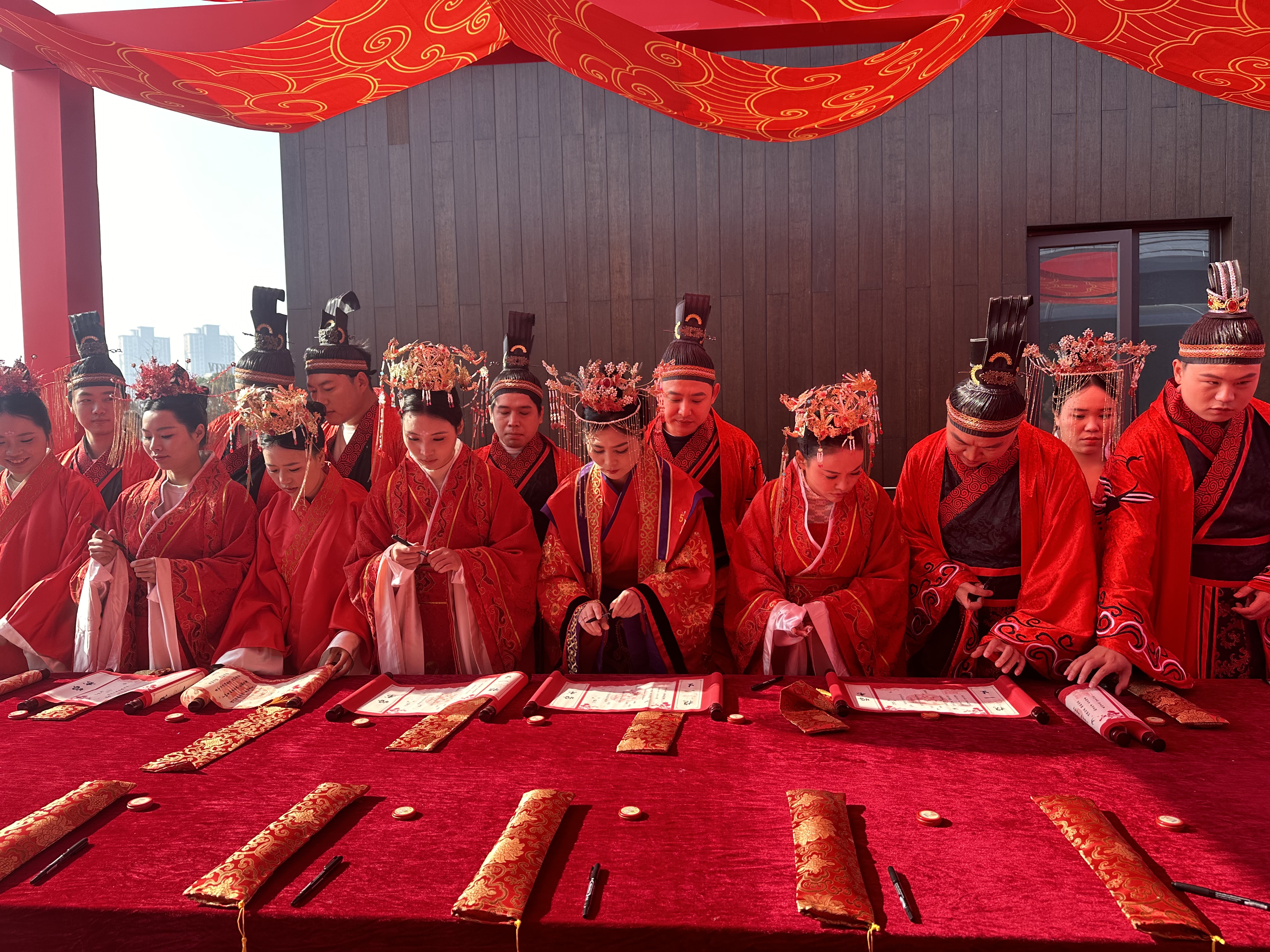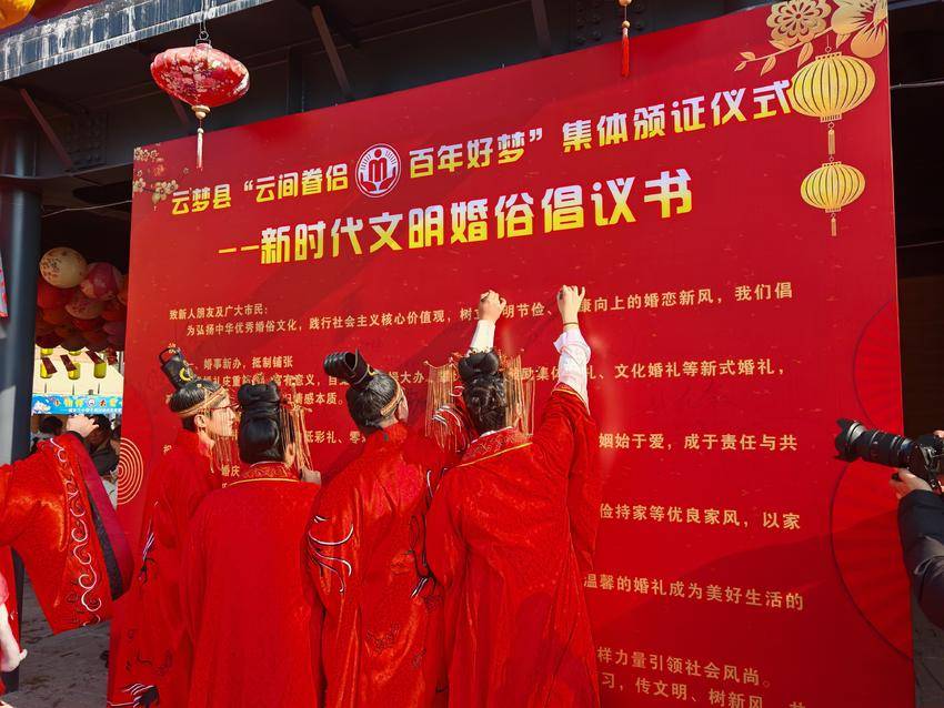 12月28日上午,云梦县“云间眷侣·百年好梦”新人集体宣誓暨颁证活动在云间集·楚秦遗梦馆举行,20对新人在传统与现代交融的仪式中喜结连理。