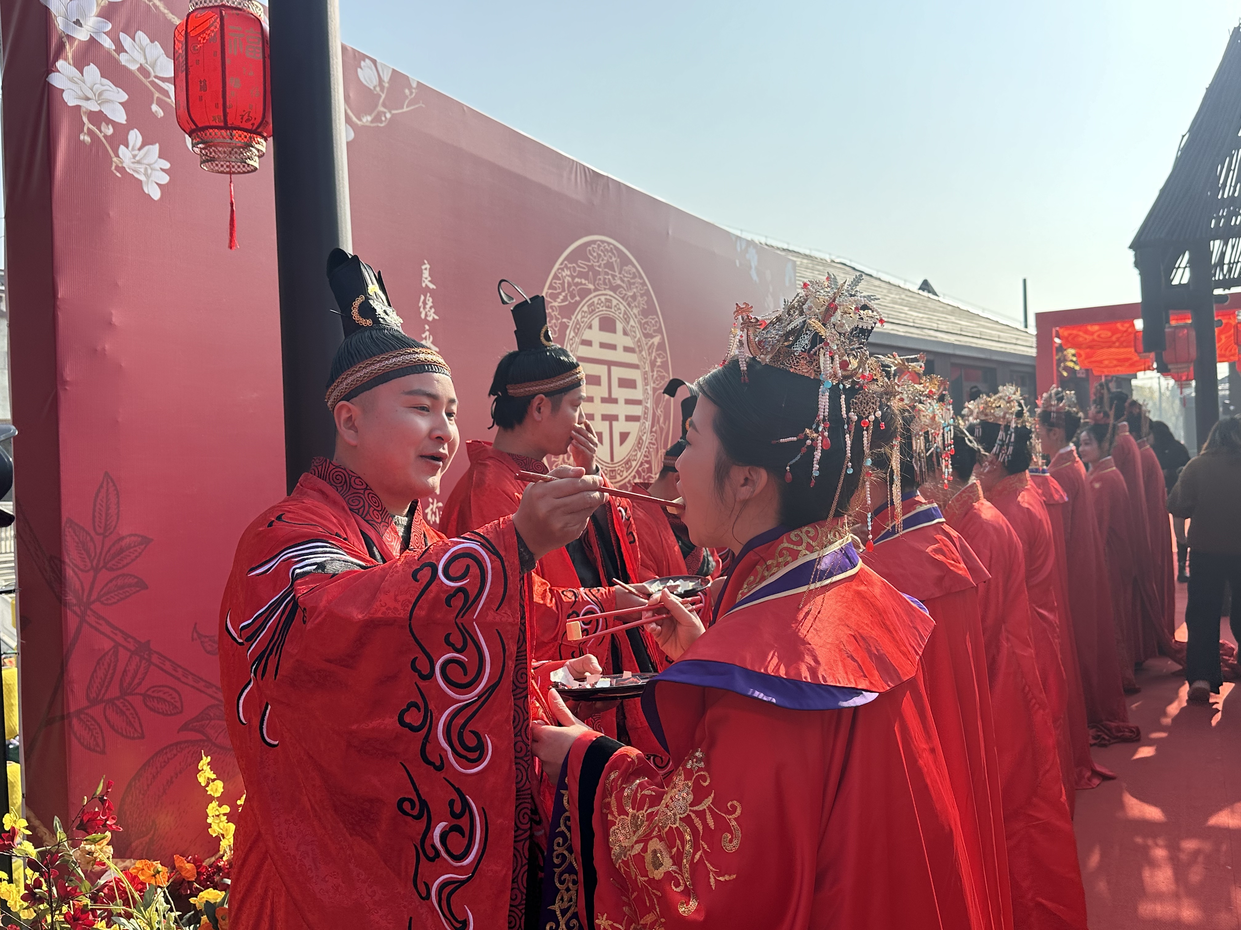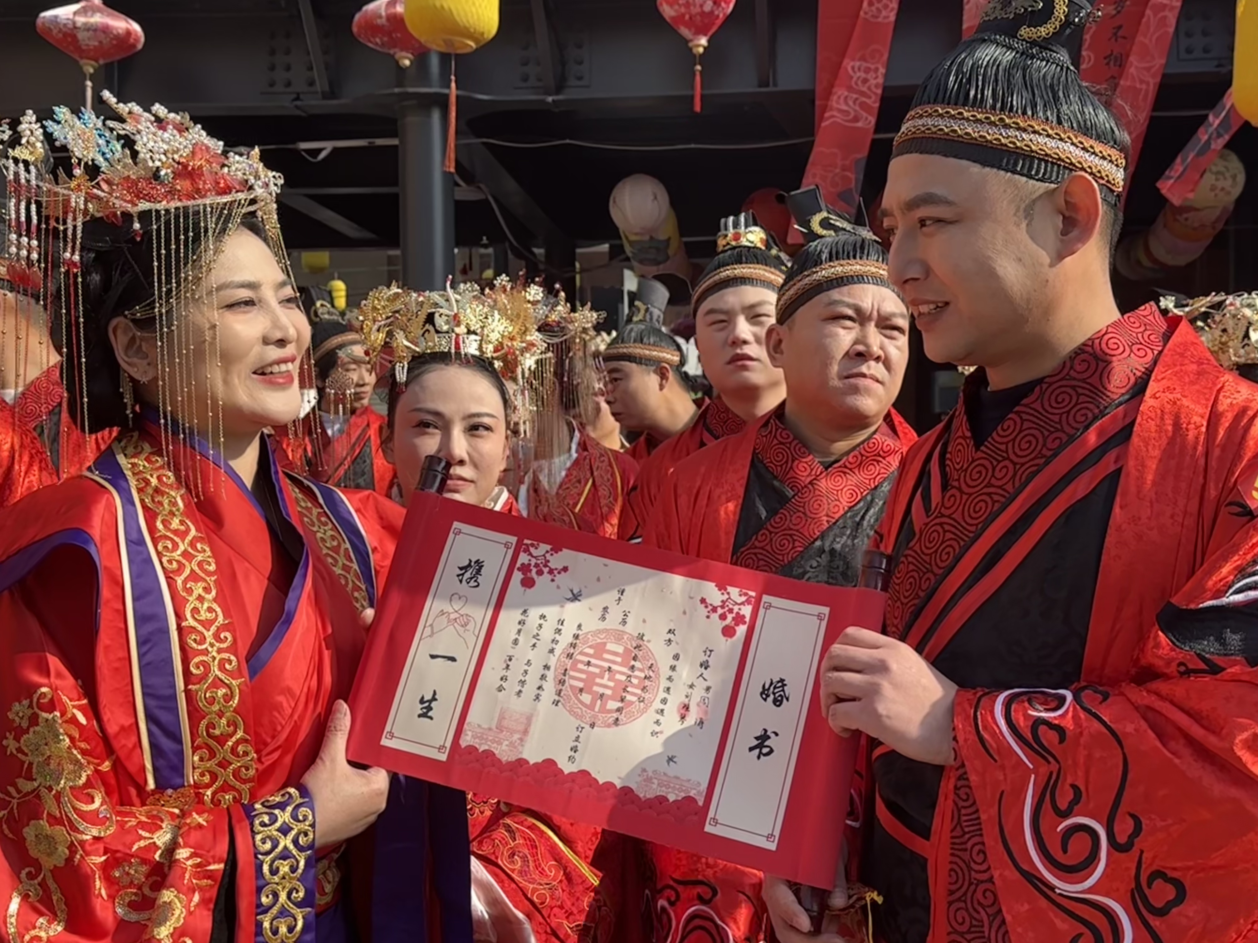 市民刘雅琴:“在这个楚秦文化氛围里面完成了这场婚礼比较有仪式感,我觉得是我人生里面最开心的一件事,和以往的婚礼也不同,比较有意义。”