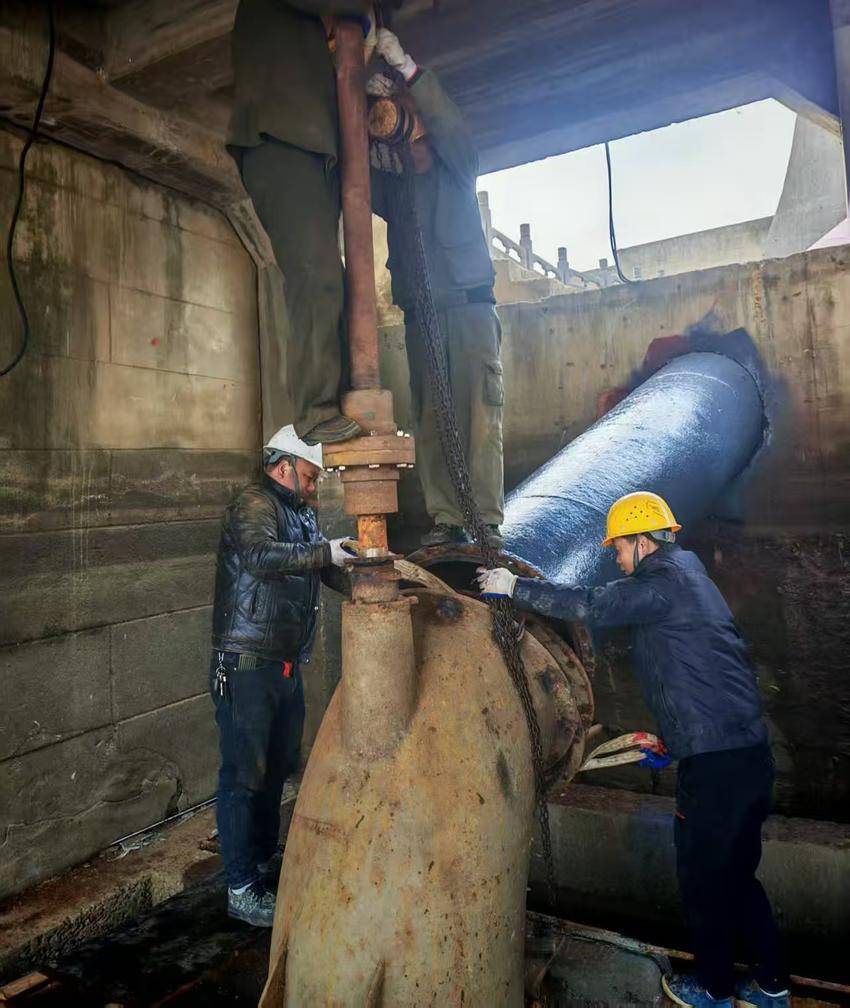 12月29日,在云梦县水利和湖泊局下辖的北湖泵站,站长代幼平带领专业技术人员手持工具,对6号机组开展水下检修,现场一片忙碌有序的景象。