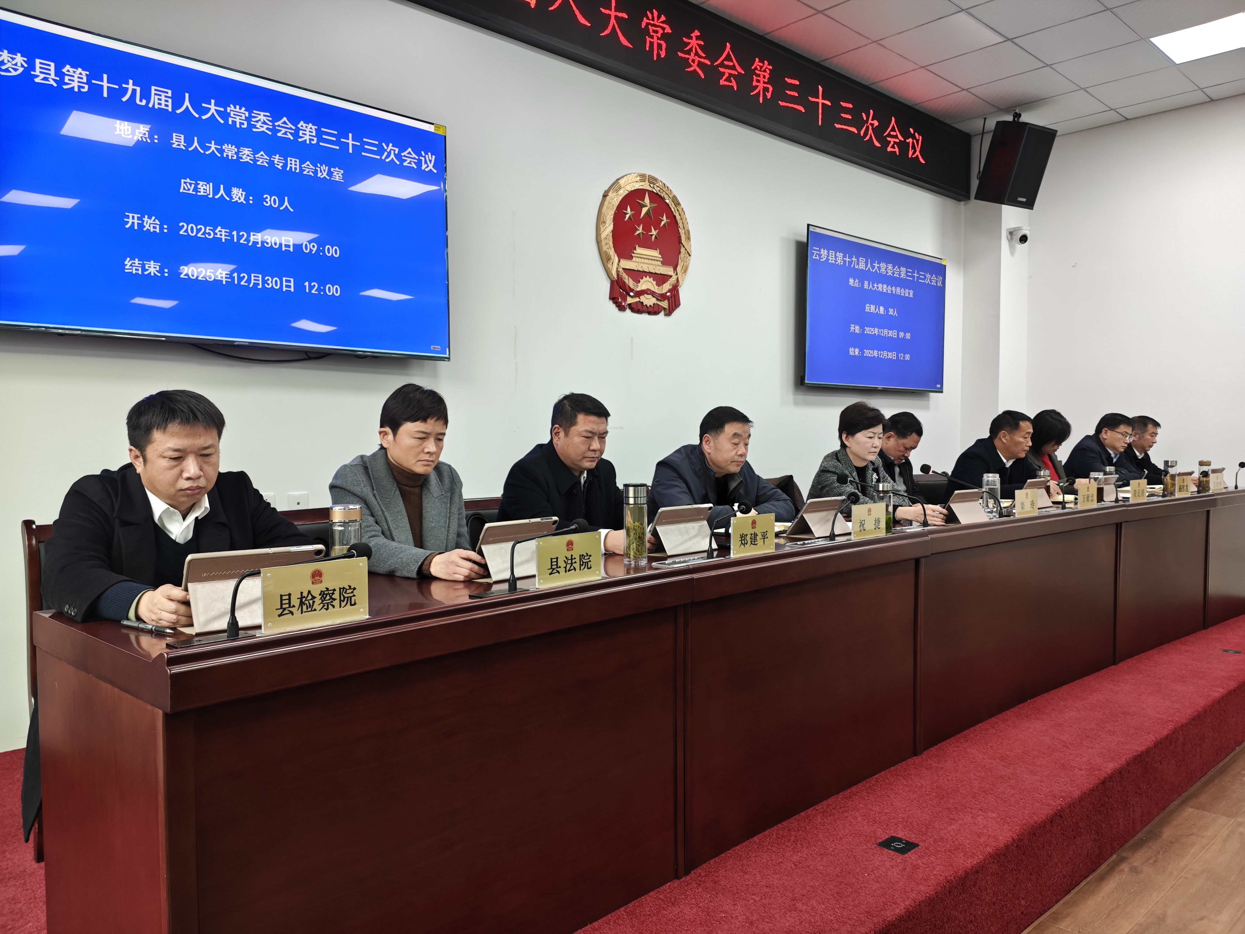 12月30日,云梦县第十九届人大常委会召开第三十三次会议。县人大常委会主任栾玲,县人大常委会副主任祝捷、万献忠、段足清、郑建平、杨雪莲及县人大常委会委员共26人出席会议,栾玲主持会议。县人民政府副县长龚华雄、县人民法院院长刘真华、县人民检察院检察长潘文、县监察委员会副主任左永波列席会议。
