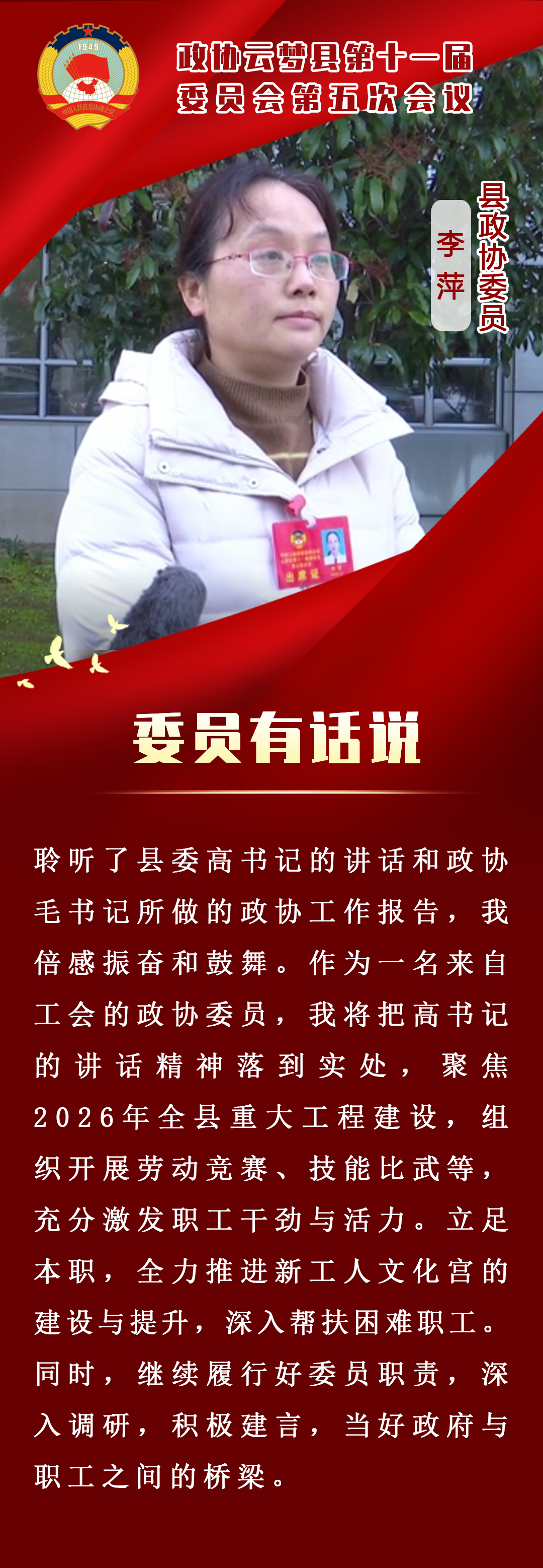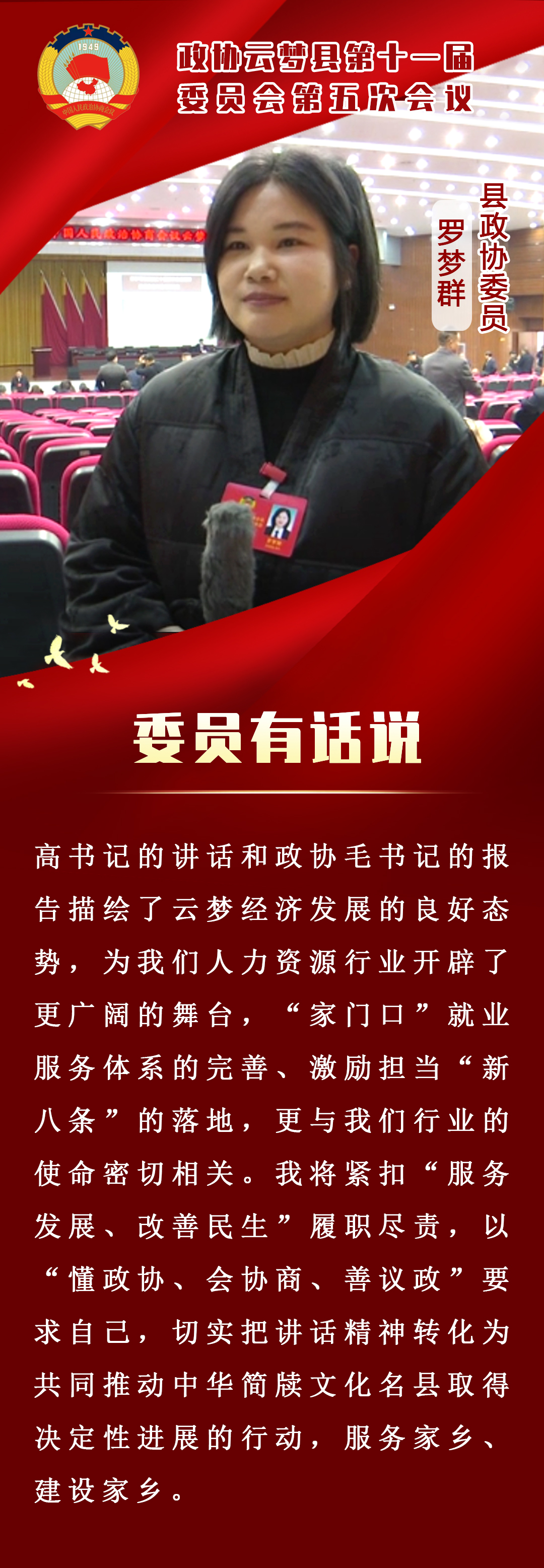 1月5日,政协云梦县十一届五次会议开幕。来自全县各行各业、各领域的政协委员肩负使命、齐聚一堂,怀揣履职为民的赤诚之心与饱满的政治热情,积极建言献策、传递民声期盼。委员们表示将以务实之举、务实之言,共同推动中华简牍文化名县建设取得决定性进展,为谱写中国式现代化云梦篇章作出新的更大贡献!