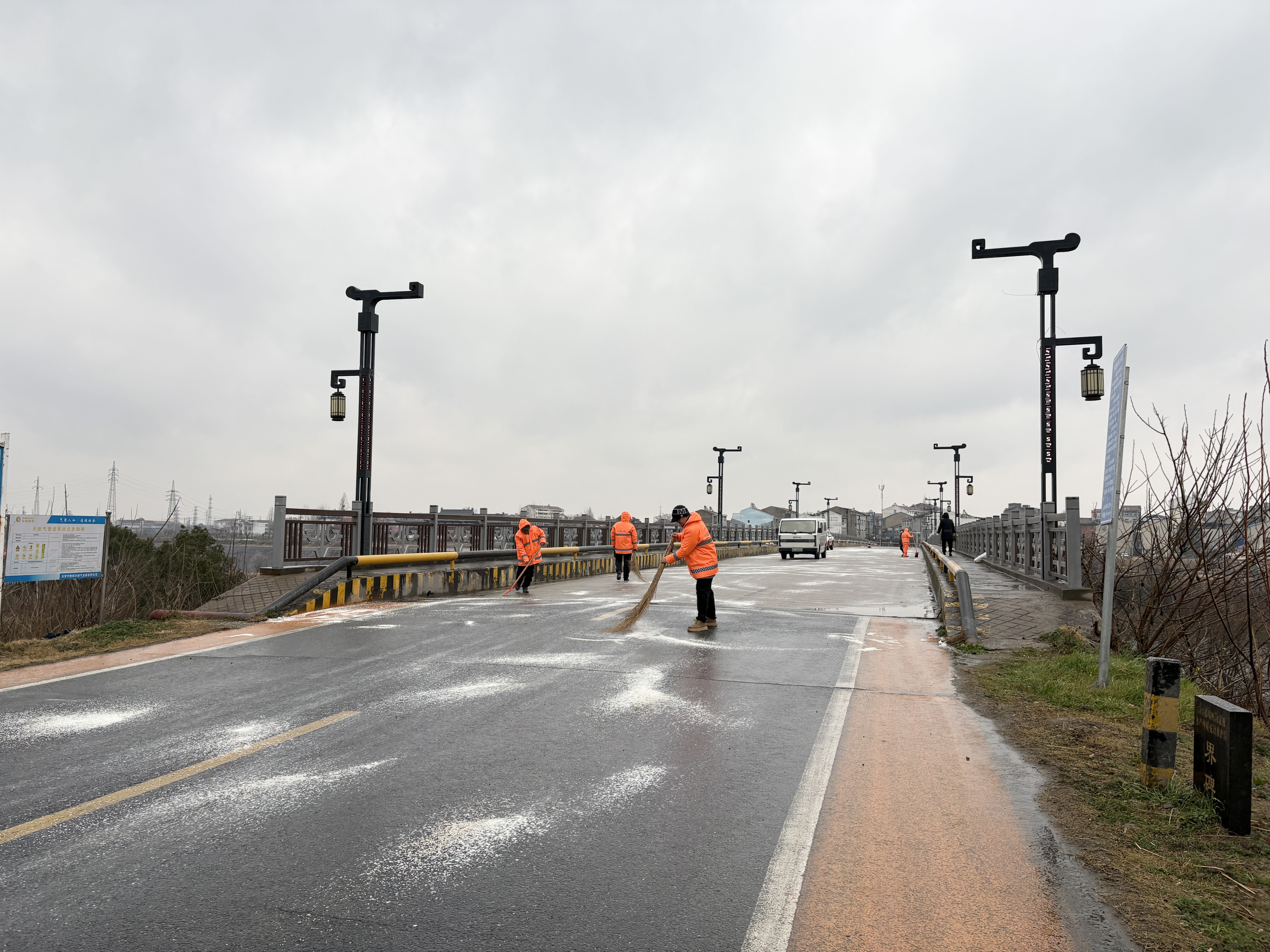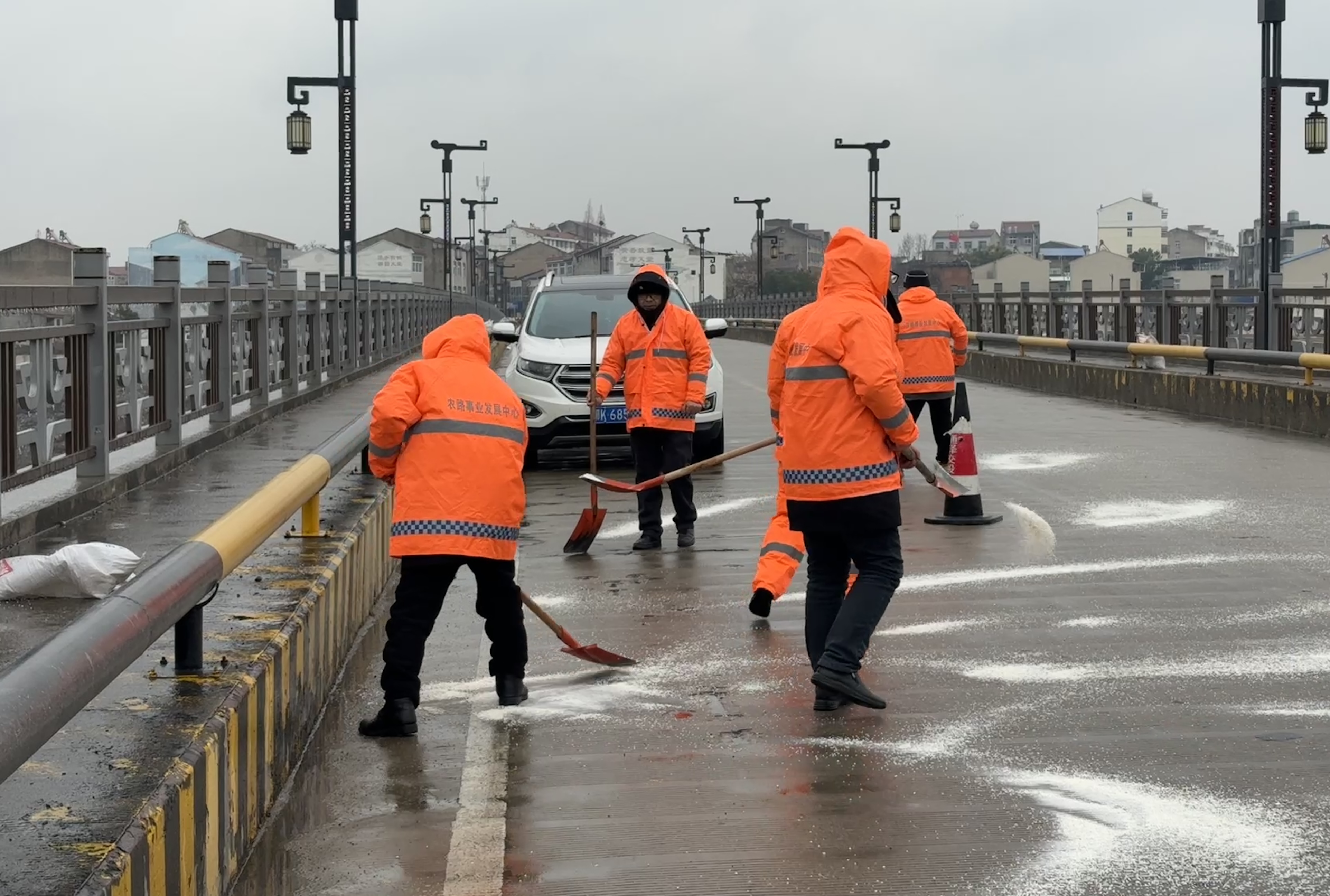 工作人员携带铁铲等工具,顶着寒风开展作业。截至19日17时,县农村公路事业发展中心科学撒布高效融雪剂7吨,覆盖农村公路网络达280公里,易结冰路段预置融雪剂15吨,并重点对弯道、陡坡及事故易发路段加强了处理,确保道路安全通行。同时,对14座桥梁实施重点保障,通过增加巡查频次和针对性撒布融雪剂,有效预防桥面结冰,保障桥梁结构安全。