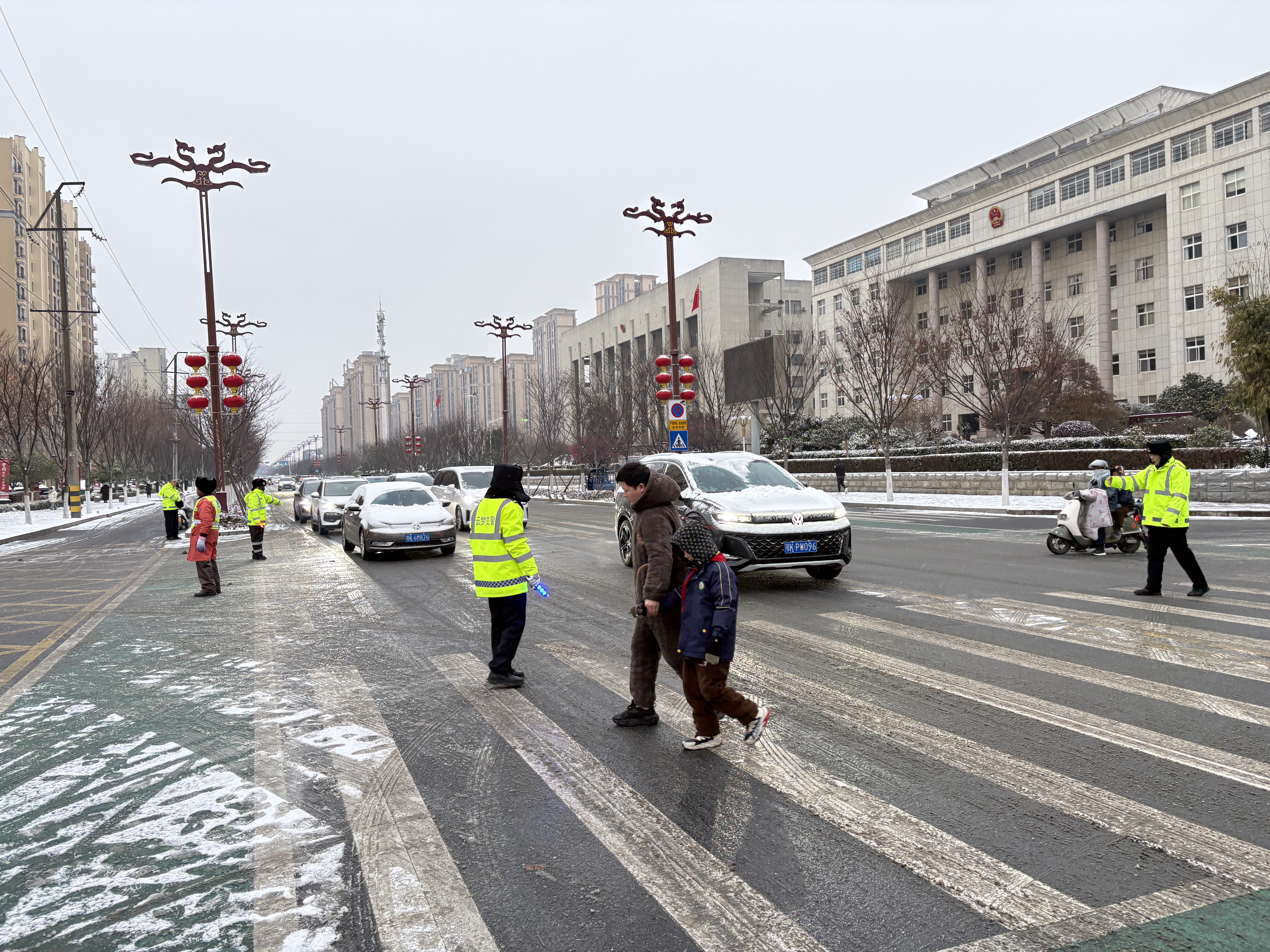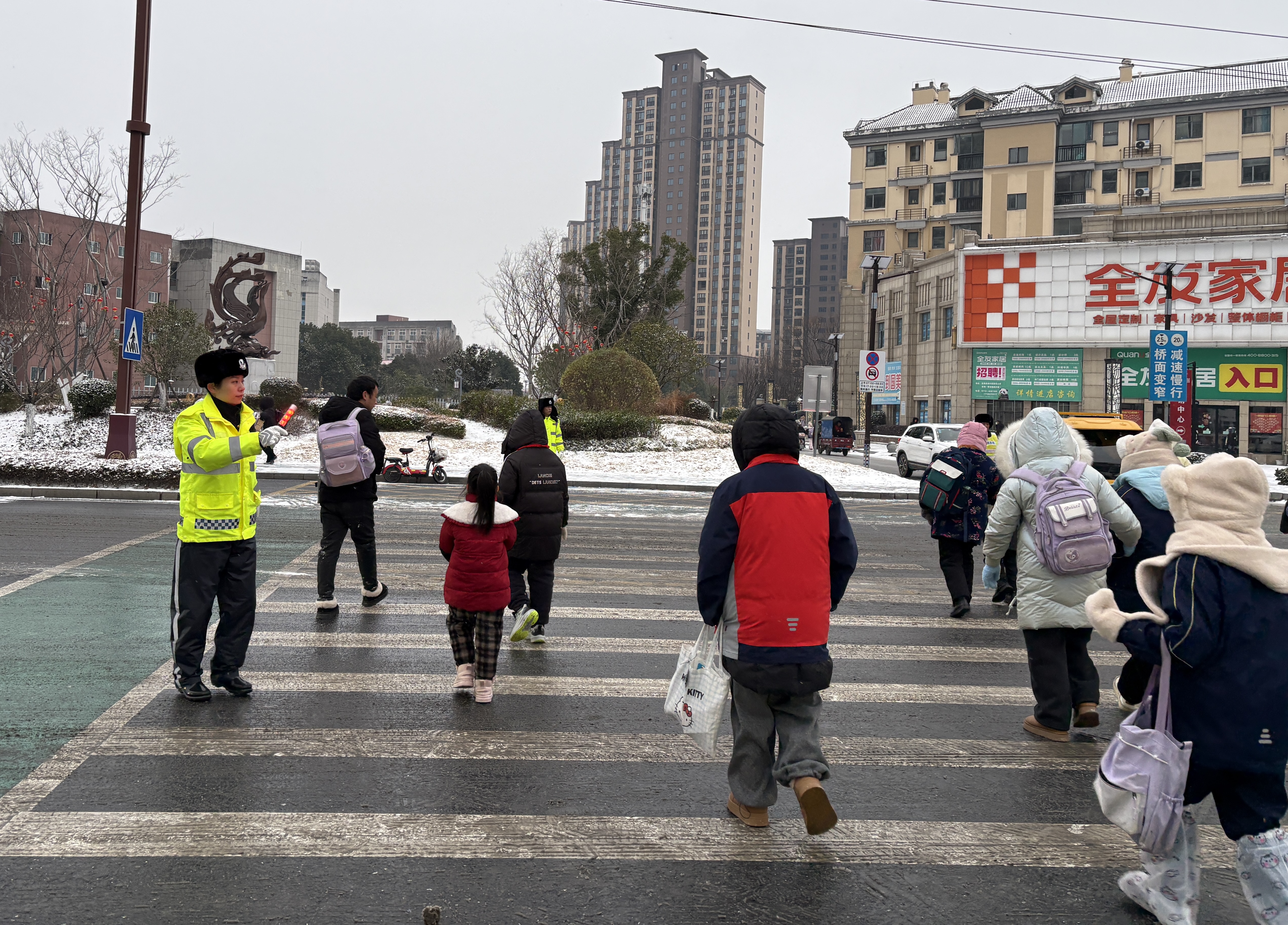 县公安局交通管理大队城区中队指导员李红敏说:“雪天路滑,减少不必要出行;机动车出行前检查轮胎、雨刮、车辆灯光是否正常,出行时放慢速度;行人与非机动车在道路上要时刻保持警惕,尽量穿着鲜艳,小心慢行。”