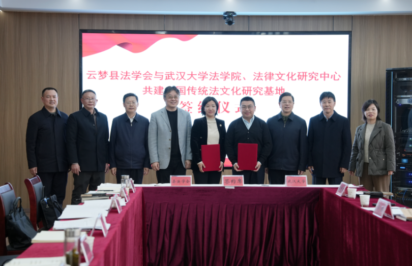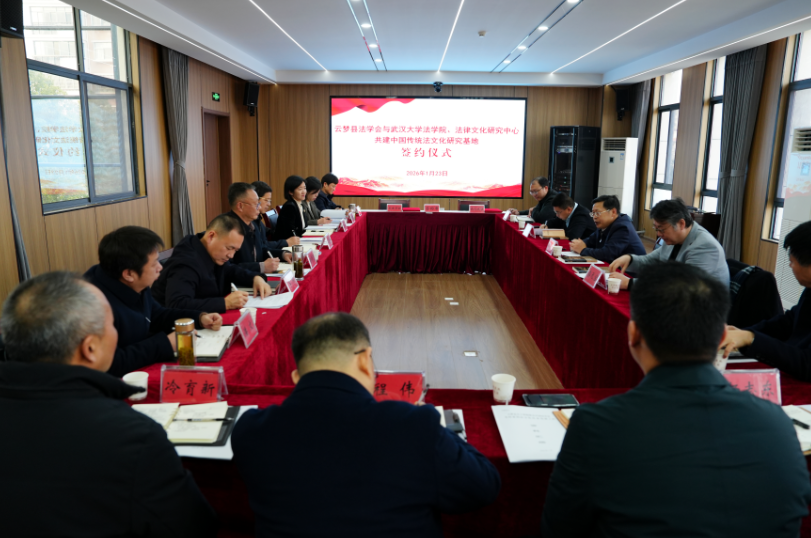 1月23日,云梦县法学会与武汉大学法学院、法律文化研究中心共建“中国传统法文化研究基地”签约仪式在云梦睡虎地考古遗址举行。省法学会党组成员、秘书长赵俊,武汉大学法学院院长、教授、博士生导师秦天宝,市委政法委委员、市法学会专职副会长杨泽堂,县领导高文峰、刘勤、杨雪莲、李伟出席签约仪式。