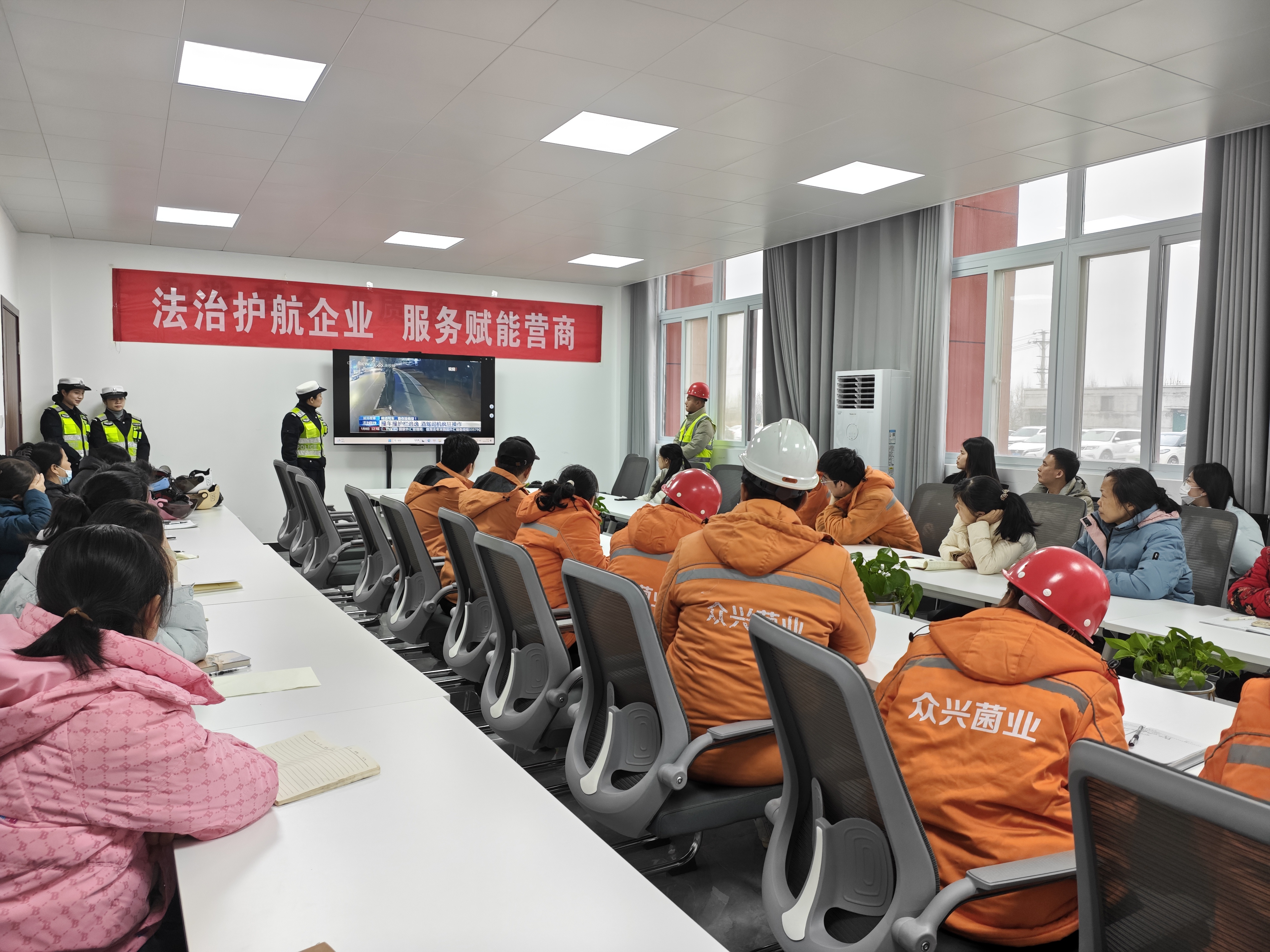 1月29日,县公安局交管大队走进湖北众兴菌业科技有限公司,开展“送教上门”交通安全知识宣讲活动。