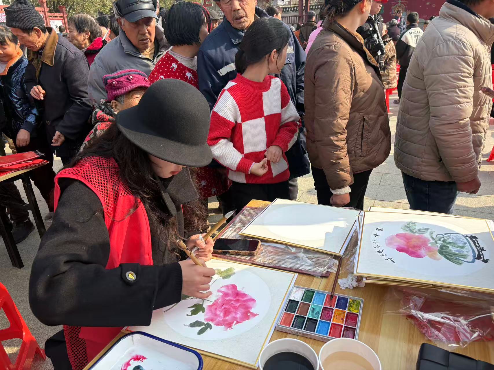 “翰墨飘香”区里,本地书法爱好者现场挥毫,一副副饱含马年祝福的春联和遒劲有力的“福”字,被乡亲们争相领取,墨香传递美好期许;“春酒贺春”区酒香四溢,乡亲们浅酌畅谈,凝聚邻里温情;“戴胜迎春”祈福仪式上,大家佩戴手工春胜,共同祈福风调雨顺、家人安康,让千年民俗焕发新活力。