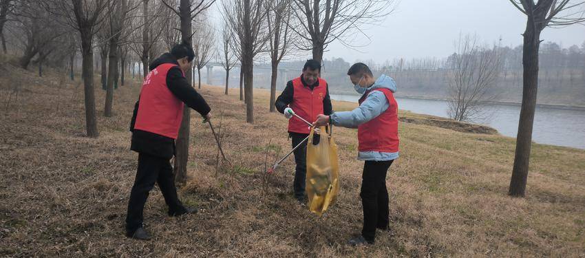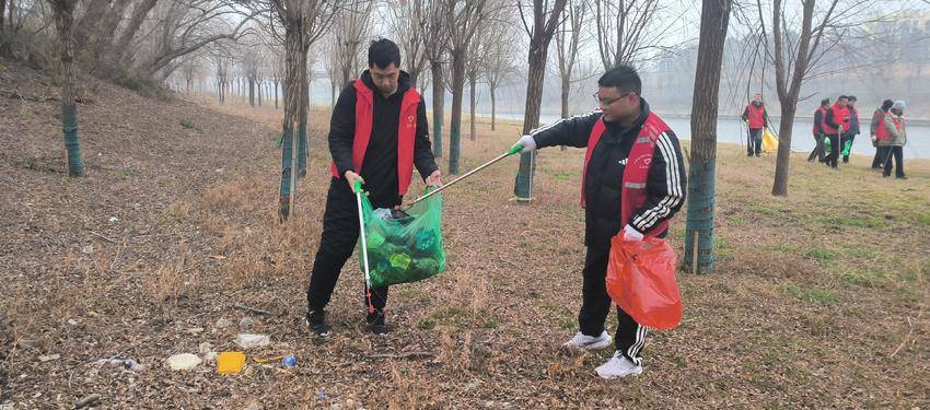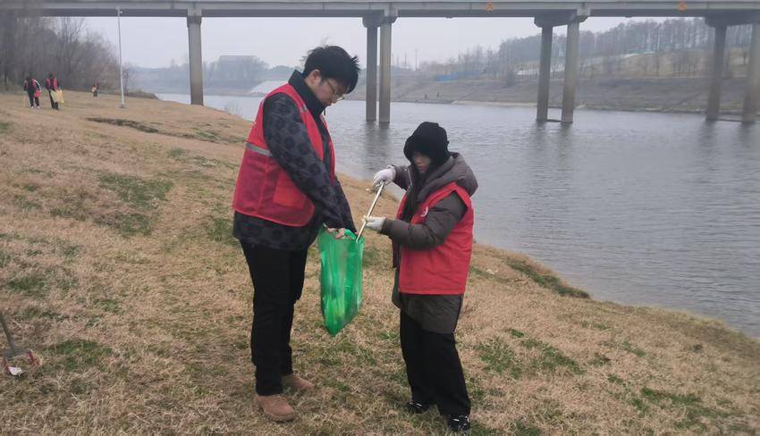 府河岸边,寒风凛冽却挡不住志愿服务的热情。干部职工们分工协作、干劲十足,迅速投入到清河劳动中:有的手持钳子,细致清理河坡上的烟头、纸屑等生活垃圾;有的挥动铁锨,将岸边枯枝杂草逐一清理;有的撑着竹竿,打捞河面漂浮的塑料袋、泡沫等漂浮物。大家相互配合、齐心协力,忙碌的红马甲成为府河两岸一道亮丽的风景线,现场一派热火朝天的劳动景象。