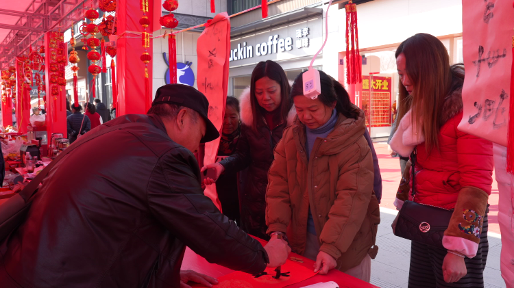活动现场还穿插带货直播、写春联送福字等互动环节,进一步丰富了活动内容,让市民在逛大集、享年味中,感受新春喜悦、收获满满幸福。