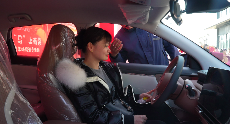 市民褚女士:“听说这边在开展年货节,购(车)有各种的补贴,在这里我了解一下,确实还挺划算的,说不定等会儿再定。”