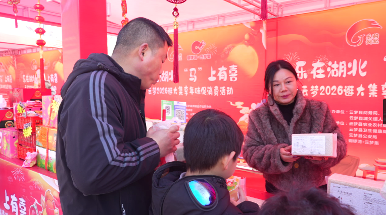 商户黄琴:“今天我们准备了20多个品种,主要是我们云梦生产的一些土特产、米面粮油,一上午大概就卖了一大半。主要是一些在外工作的云梦人购买,说是主要带动一下云梦的消费,带出去的年味。”