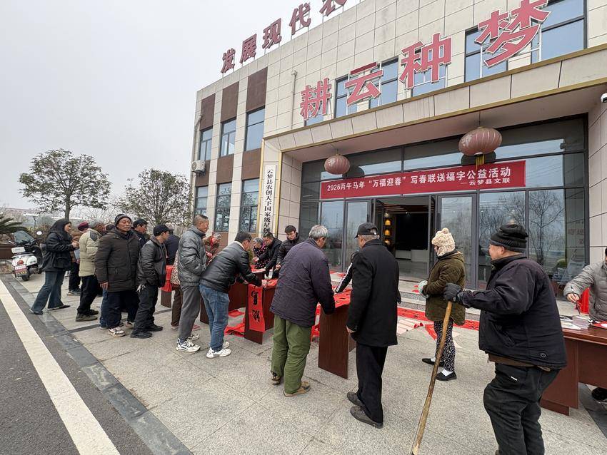 近日,县文联在城关镇百合村耕云种梦公司门口举办2026丙午马年“万福迎春”写春联送福字公益活动,为当地群众送上新春的美好祝福。