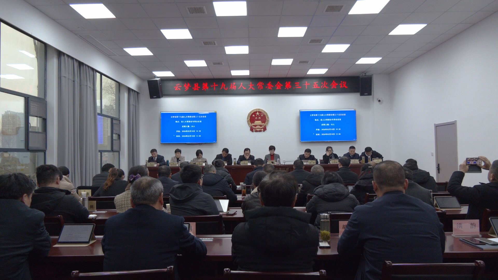 2月10日,云梦县第十九届人大常委会召开第三十五次会议。县人大常委会主任栾玲,县人大常委会副主任祝捷、万献忠、石燕桃、段足清、郑建平、杨雪莲及县人大常委会委员共30人出席会议,栾玲主持会议。县人民政府副县长龚华雄、县人民法院院长刘真华、县人民检察院检察长潘文列席会议。