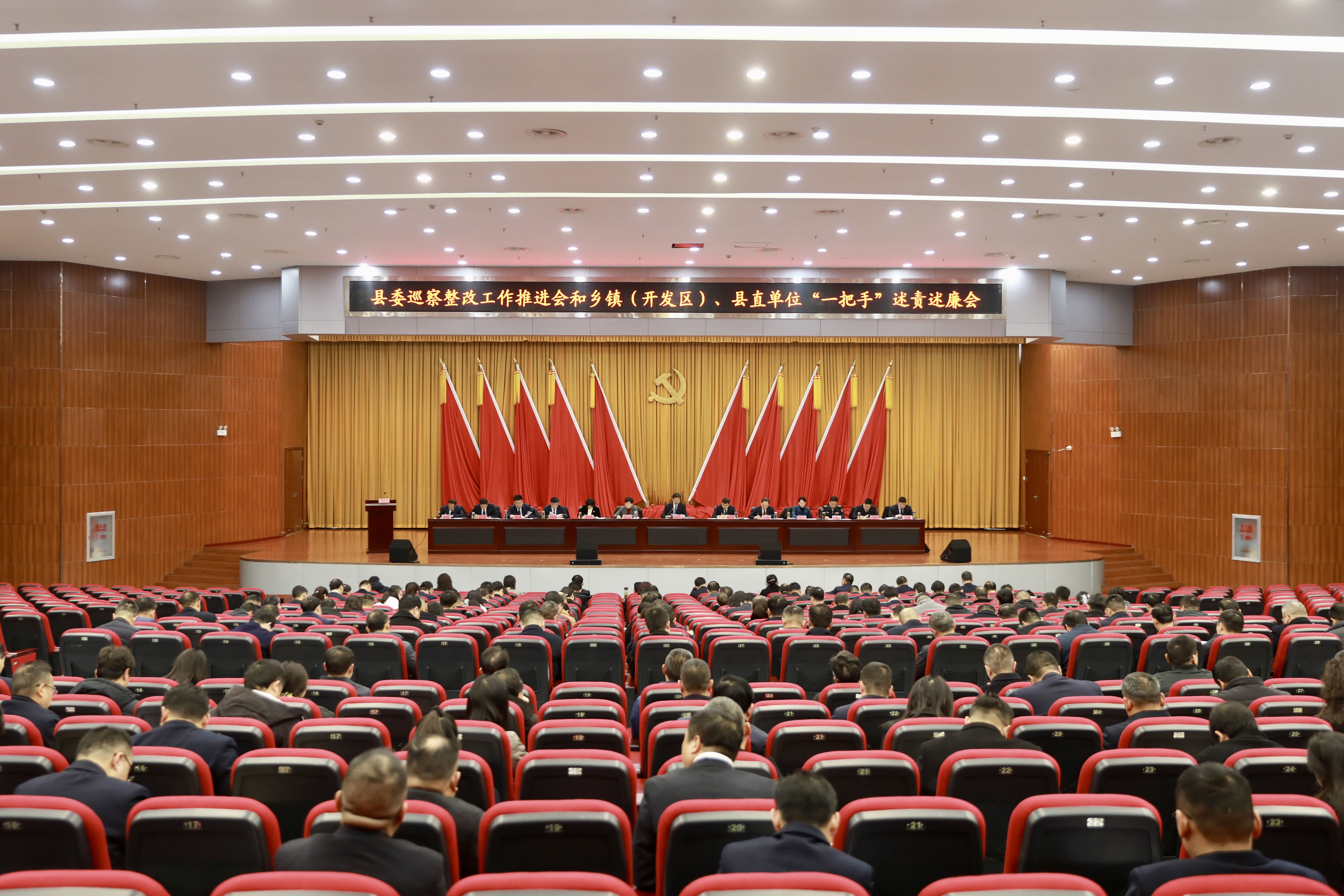 2月10日,县委巡察整改工作推进会和乡镇(开发区)、县直单位“一把手”述责述廉会召开,会议认真贯彻落实党的二十大和二十届历次全会精神,全面贯彻二十届中央纪委五次全会精神、习近平总书记考察湖北重要讲话精神及省纪委、市纪委全会精神,严格落实党中央及省委关于加强对“一把手”和领导班子监督的重要要求,对十五届县委巡察反馈问题整改情况进行阶段性总结,对下一阶段巡察整改工作进行再部署、再推进,听取部分乡镇和县直单位“一把手”述责述廉并开展民主测评。县委书记高文峰主持会议并讲话。尹亮、栾玲、毛石峰、刘勤、王甜、龚华雄、王晓伟、吴险峰、万清平、刘虎、方珂、左亚琴等县“四大家”领导参加会议。