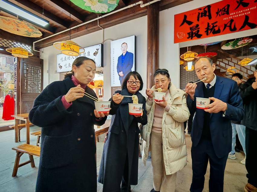 参加启动仪式的领导共同为“非遗手工技艺”“云梦鱼面馆”揭牌,并观摩了云梦鱼面制作全流程,现场品鉴鲜制鱼面,为云梦鱼面非遗品牌现场推介。