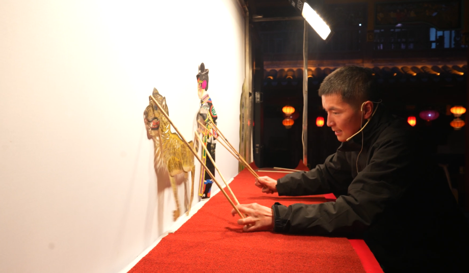 国家级非物质文化遗产项目云梦皮影戏市级传承人陈红军:“让大家了解中国云梦的历史和文化,(春节期间)一天要演十多场次。”