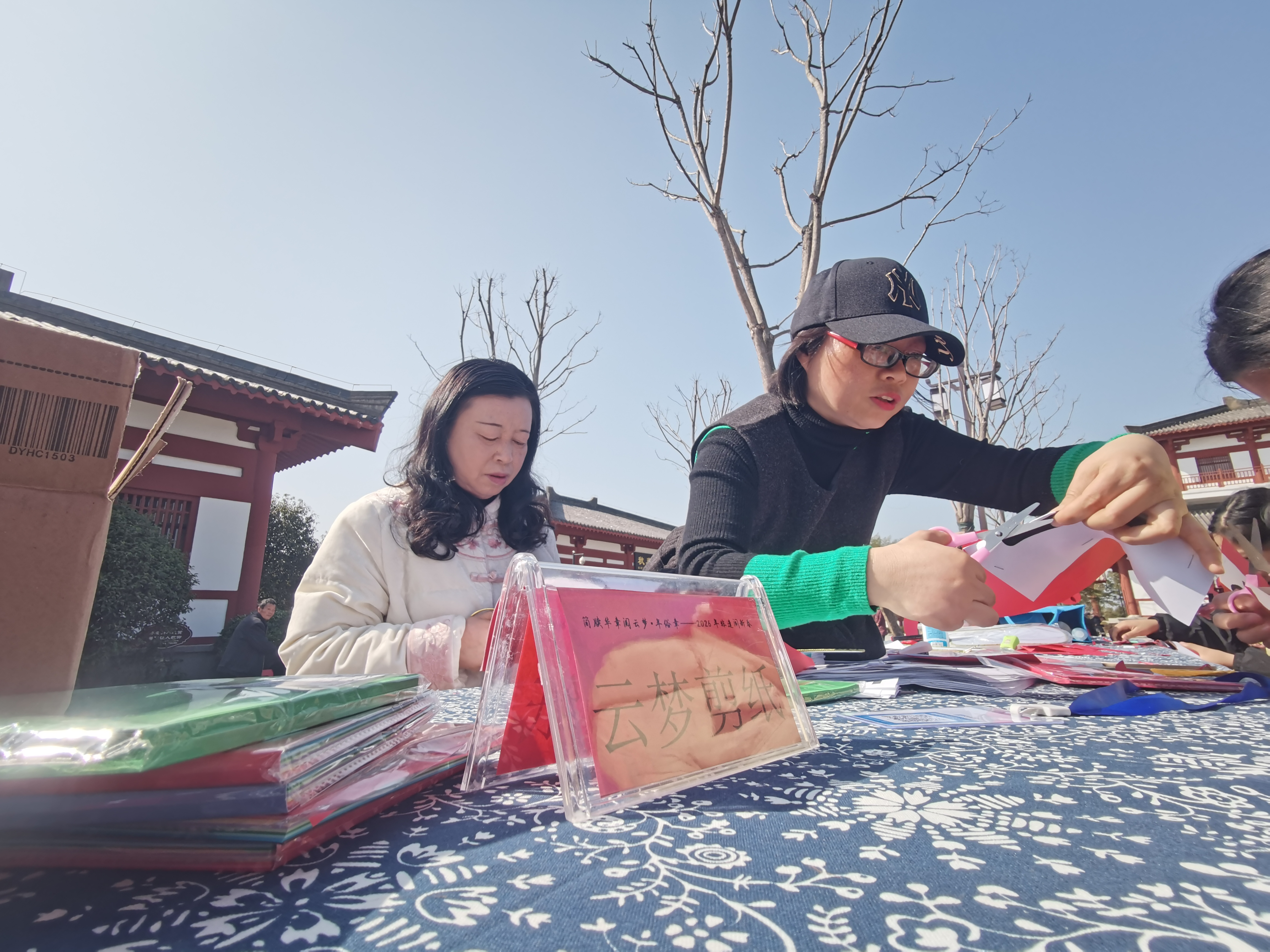 互动体验区里,剪纸艺人手把手教孩子们剪纸,红纸翻飞间,吉祥图案跃然纸上;手工体验台前,家长孩童齐上阵,在编织、拓印中触摸传统技艺的温度。