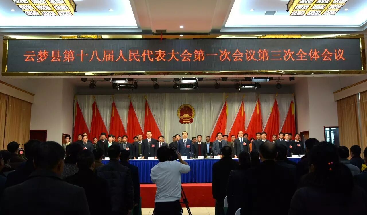 12月16日,云梦县第十八届人民代表大会第一次会议圆满完成各项议程,在雄壮的国歌声中胜利闭幕。