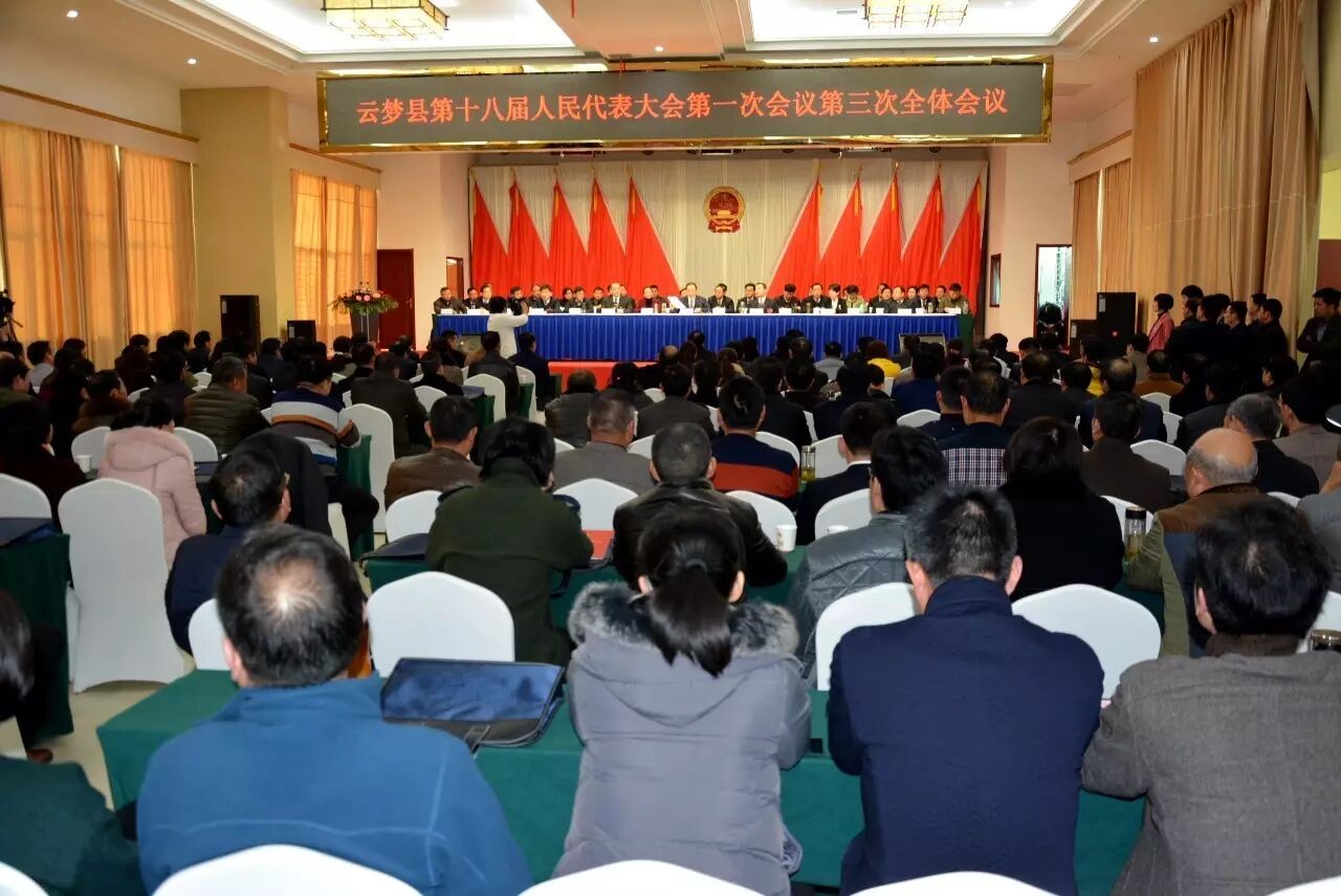 大会举行第三次全体会议,以无记名投票的方式,选举产生了云梦县第十八届人大常委会主任、副主任、委员,县人民政府县长、副县长,县人民法院院长,县人民检察院检察长,云梦县出席孝感市第六届人民代表大会代表。会议以举手表决的方式,通过了关于政府工作报告的决议、云梦县2016年国民经济和社会发展计划执行情况与2017年国民经济和社会发展计划的决议、云梦县2016年财政预算执行情况和2017年财政预算的决议、云梦县十七届人大常委会工作报告的决议、云梦县人民法院工作报告的决议、云梦县人民检察院工作报告的决议。通过了关于议案的决议。