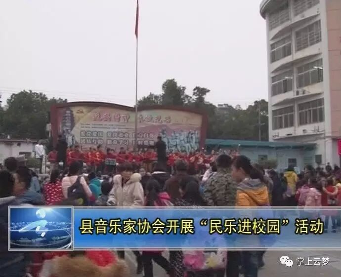 1月3日,在县实验小学大操场上,弦乐阵阵,丝竹声声,身着红色唐装的县音乐家协会的会员们,正在为实验小学的师生们倾情演奏经典的民族器乐曲,优美的旋律打动了在场的每一个人。
