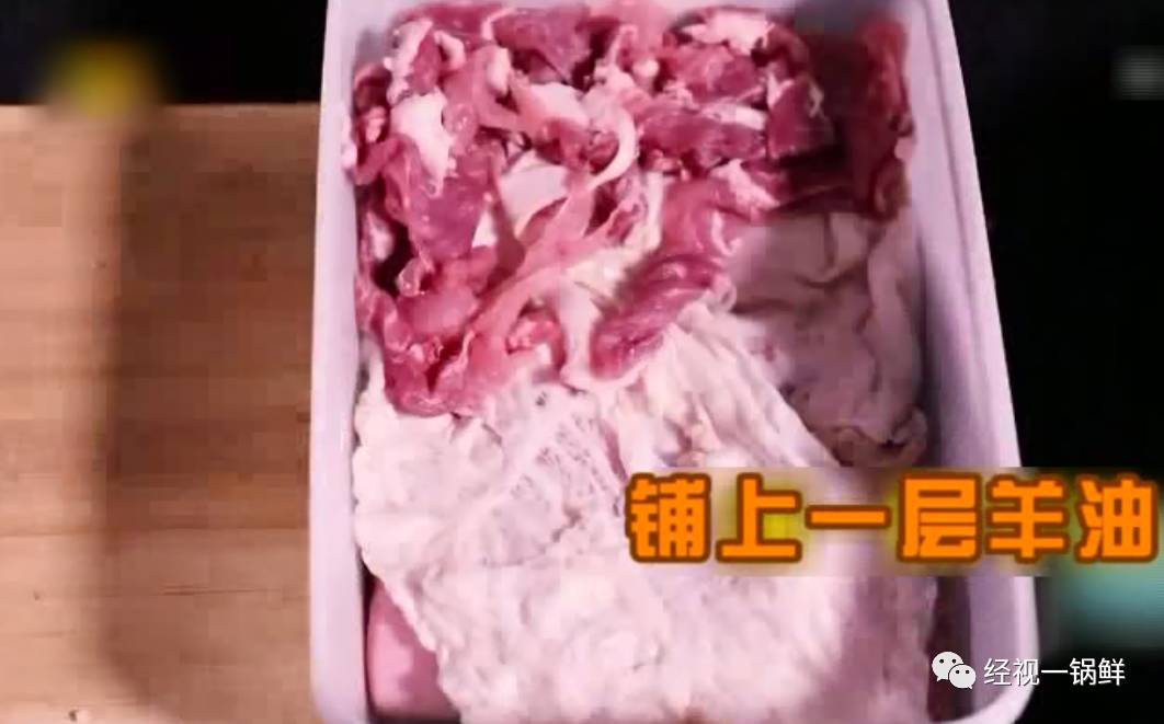 把它铺在保鲜盒底下,然后铺上一层羊油。