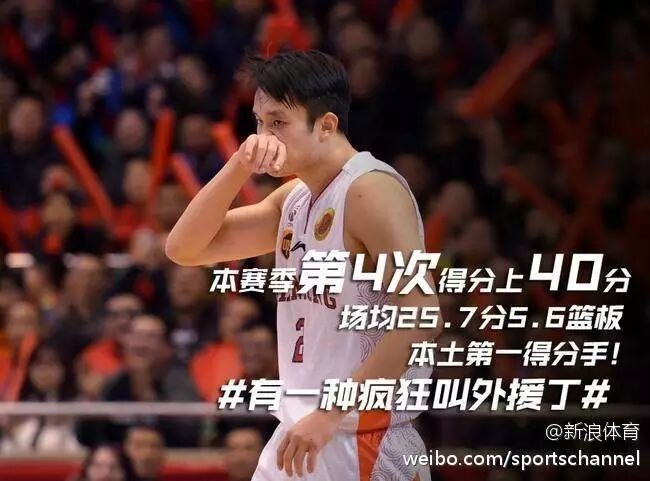 CBA常规赛第31轮,山东117-106战胜深圳,山东队的丁彦雨航再次砍下了40分的高分,这是丁彦雨航本赛季第四次砍下40+的表现。本赛季,丁彦雨航场均可以得到25.7分5.6个篮板,他已经当之无愧的成为了本土第一得分手。